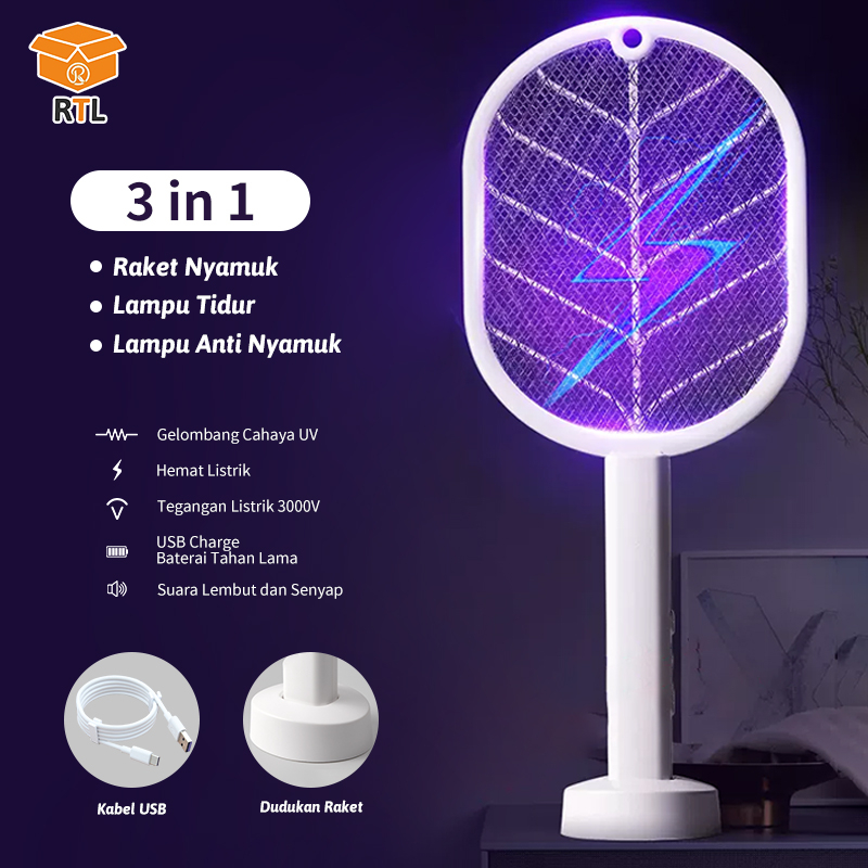 Raket Nyamuk Elektrik Cas Ori Tahan Lama Murah Awet Charger Usb 2 in1 Raket Nyamuk Standing