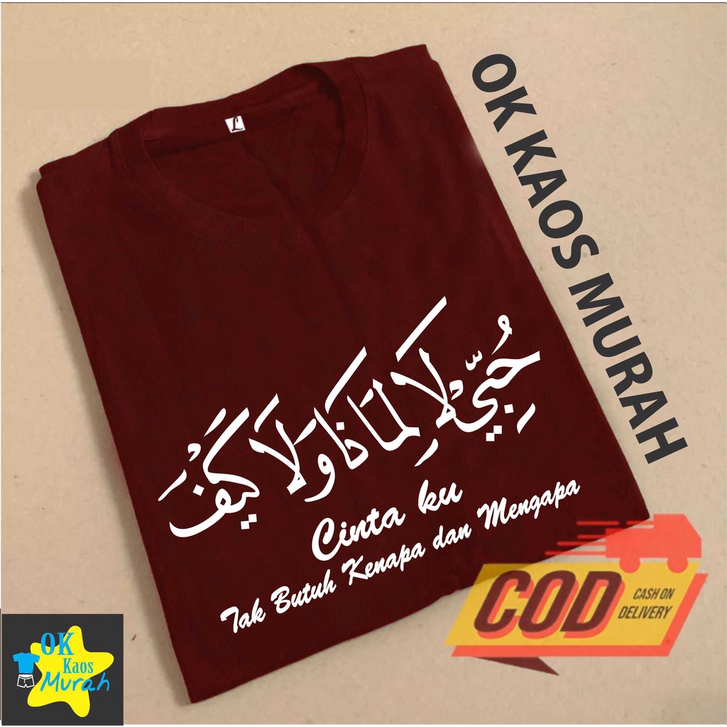 kaos atasan santri tulisan arab cintaku tidak butuh kenapa dan mengapa, kaos islami , kaos pria dan wanita