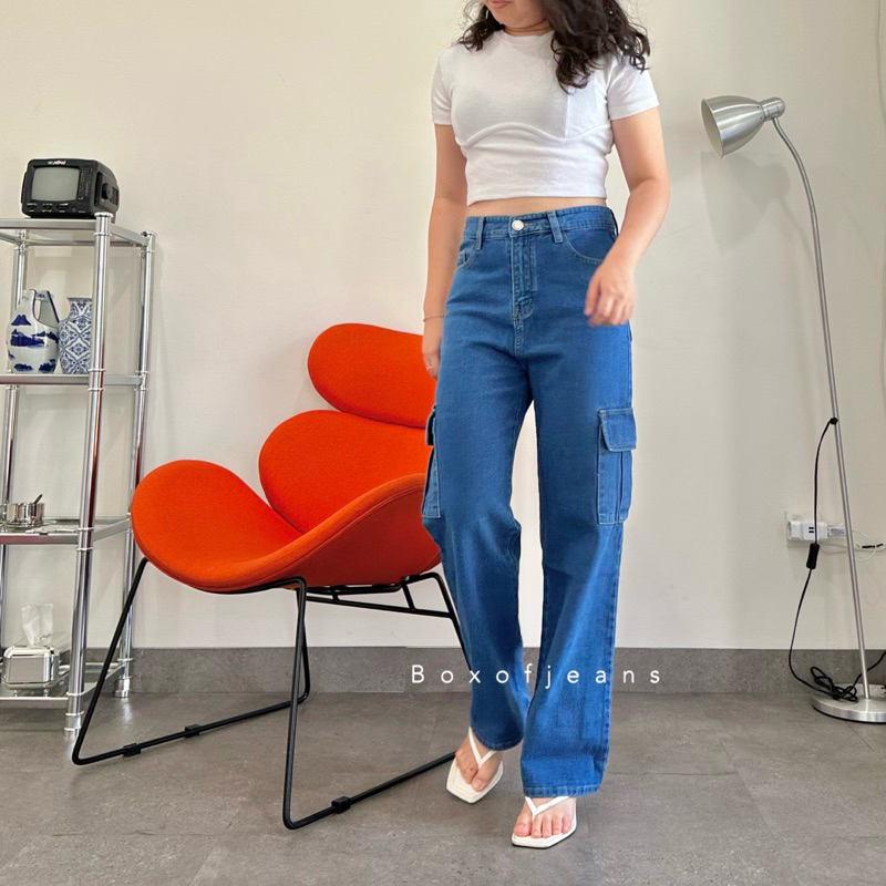Boxofjeans - Cargo Hw Loose Jeans - Medium Blue