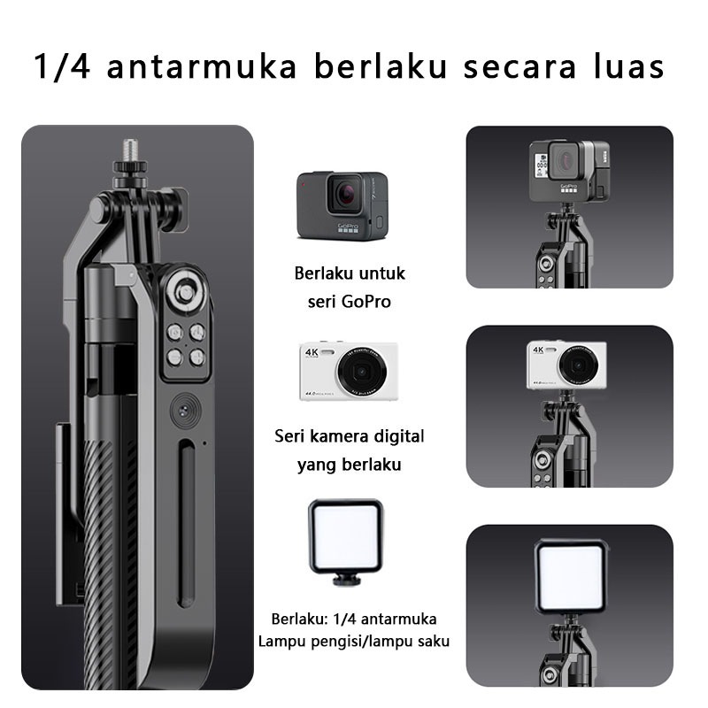 TOOREA Pelacakan Wajah Otomatis Tripod Selfie Stick 1.8m Gimbal Handphone Stabilizer 360° Stand 4-leg Tongsis dengan LED
