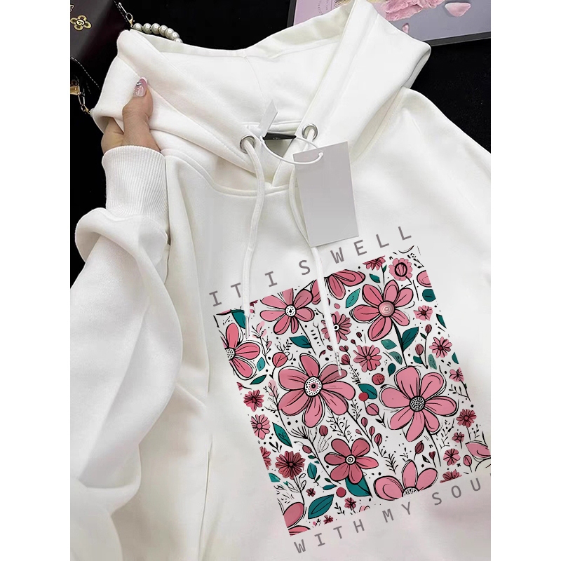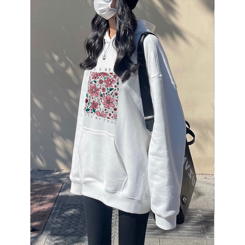 Forteid Hoodie Sweater Wanita Oversize Hoodie Motif bunga Korean Style Baju Wanita Kekinian/Baju Wanita/Switer Wanita Ho
