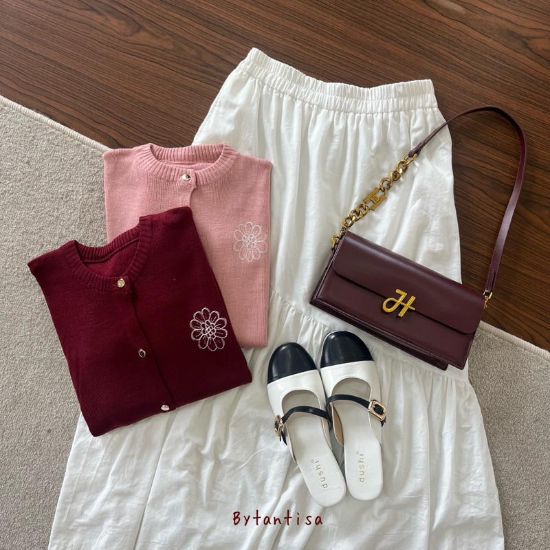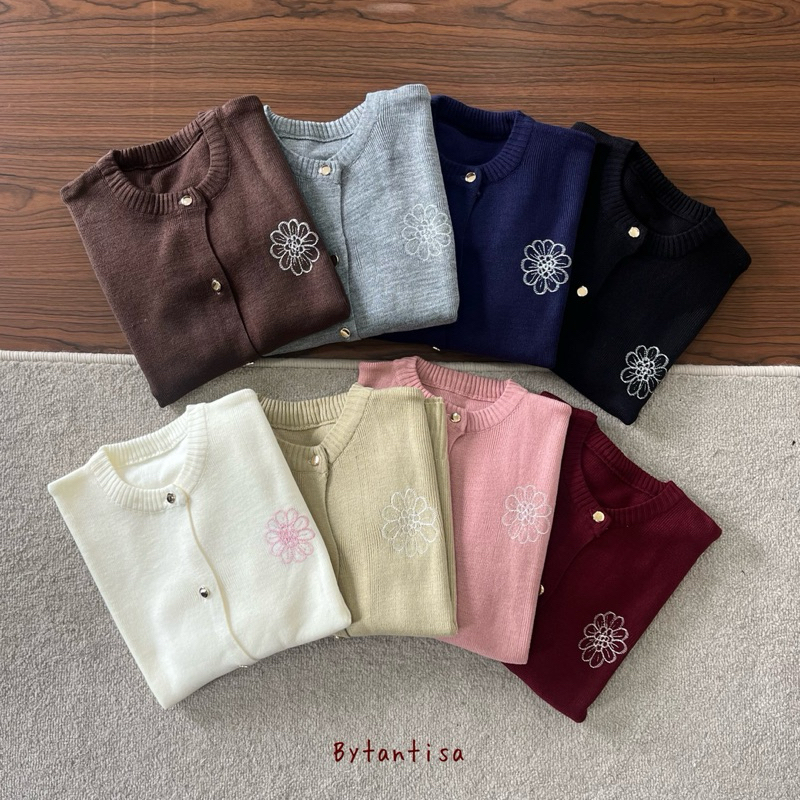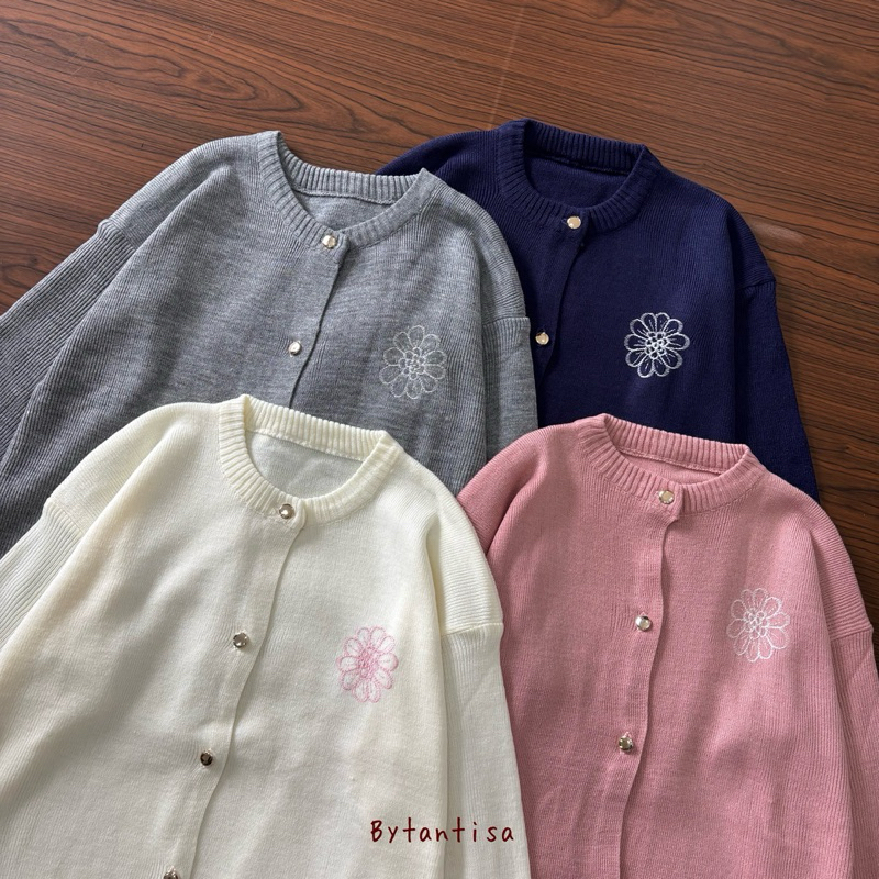 Bytantisa - Cardigan Rajut Flower Bordir Cute Bahan Lembut