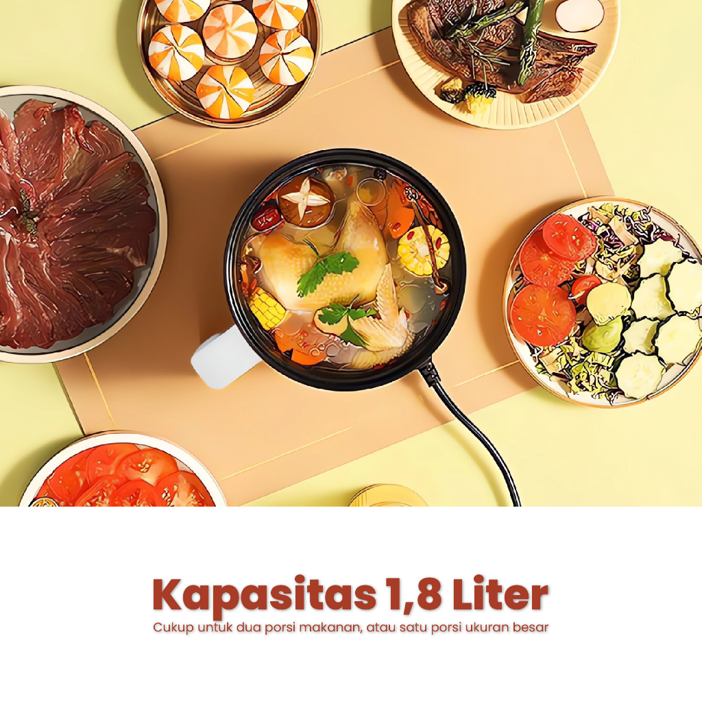 Portable Electric Frying Pan Panci Listrik Serbaguna 1.8L Low Watt Infinilapan
