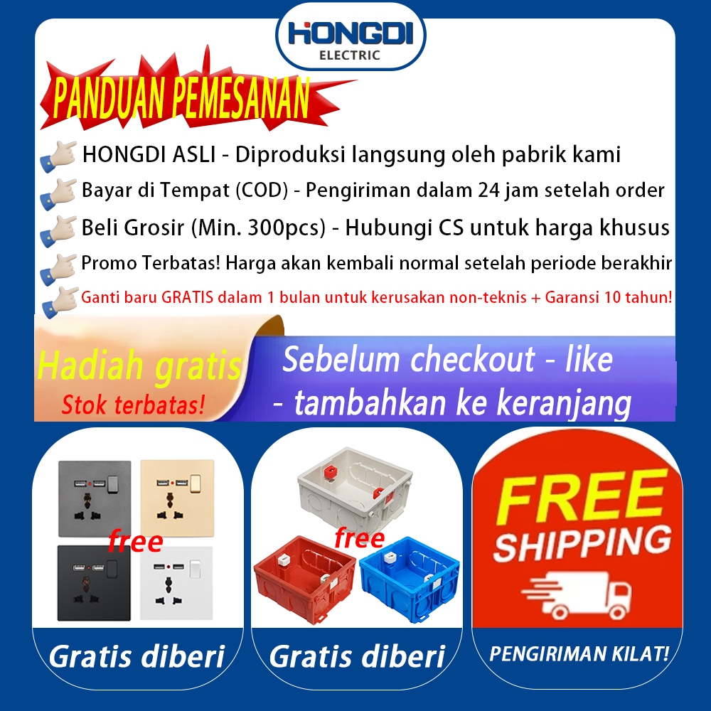 HONGDI Saklar Stop Kontak Mewah Hitam Desain Kotak untuk Lampu dan Peralatan Listrik