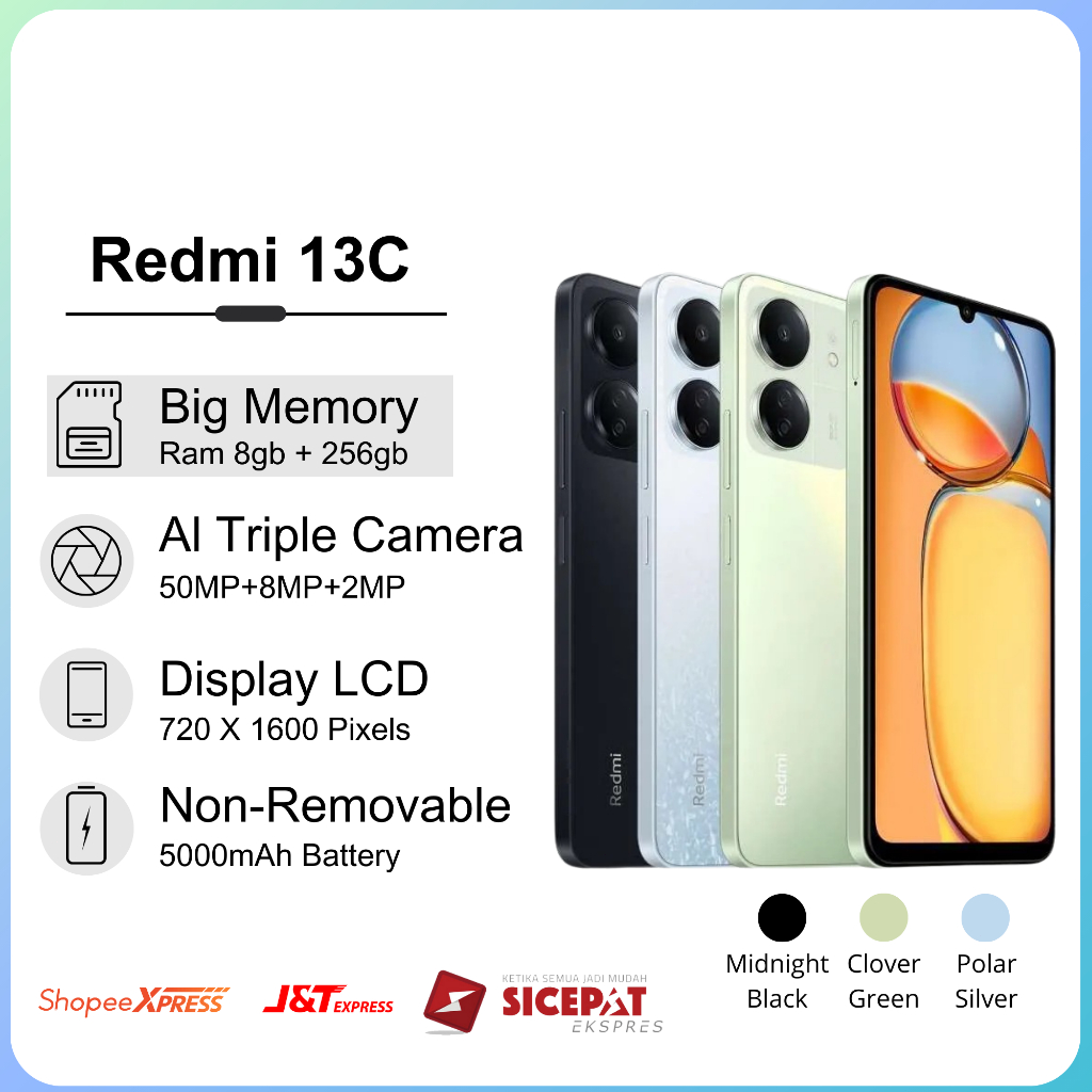 XIAOMI REDMI 13C RAM 8/256 GB FULLSET GARANSI 1 TAHUN