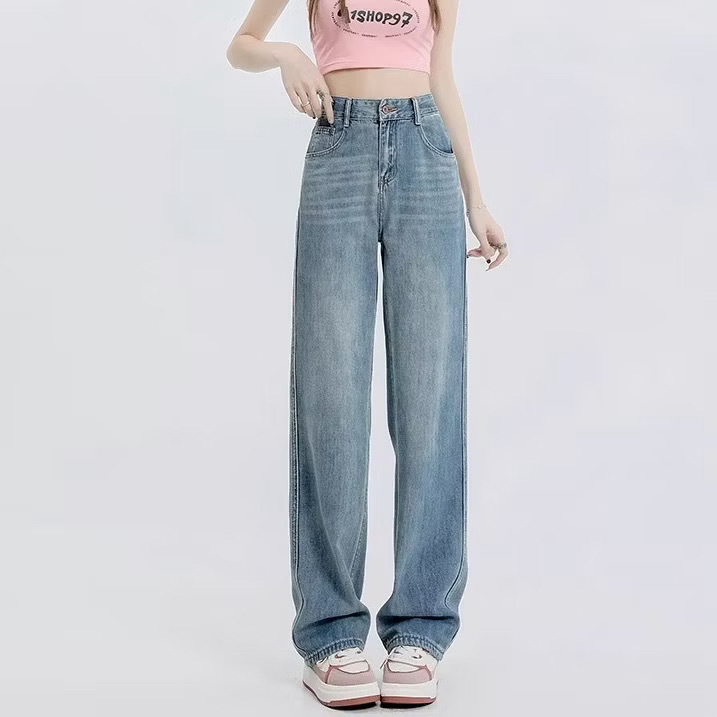 Celana Jeans Wanita Baggy Oversize Loose High Waist Wide Leg Korean Look Kekinian Biru Retro