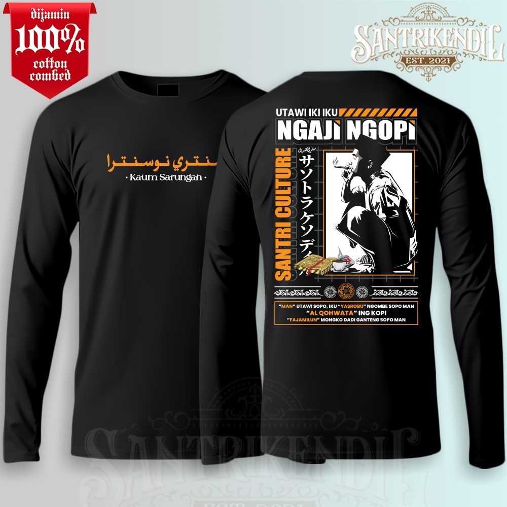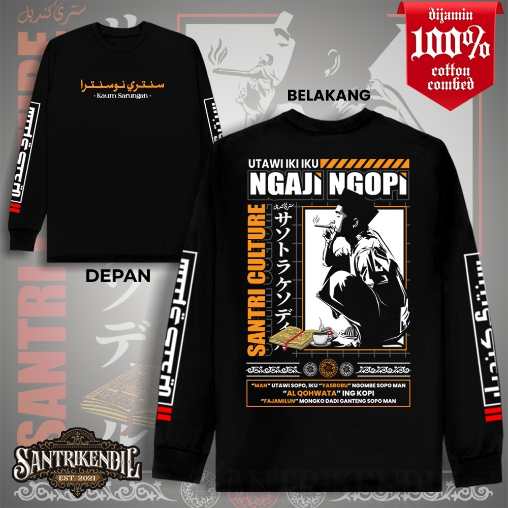 KAOS SANTRI KUALITAS PREMIUM 100 COTTON SUPER COMBED TEBAL STREETWEAR LENGAN PANJANG DAN PENDEK DISTRO SANTRI KEREN SALAFY KANG SANTRI ISLAMI DAKWAH TERBARU kaos ngaji ngopi / kaos tukang ngopi