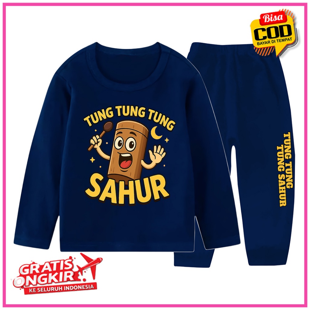 Tung Tung Tung Sahur PIyama Baju Setelan Anak Laki-Laki Lengan Panjang Celana Panjang 3Tahun-10Tahun