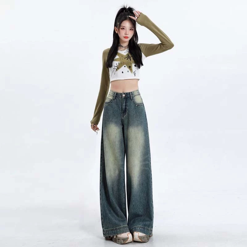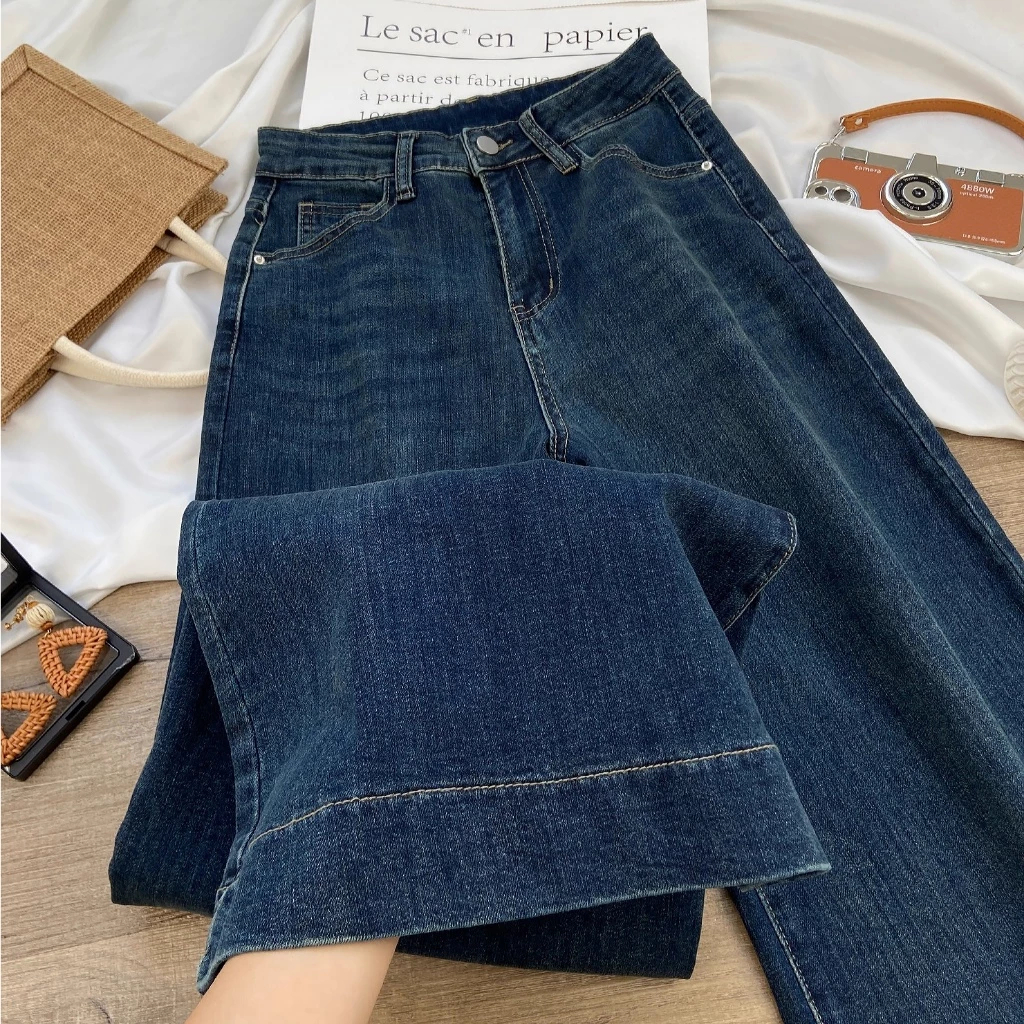 Celana Jeans Wanita Baggy Oversize Loose High Waist Wide Leg Korean Look Kekinian Biru Retro Vintage