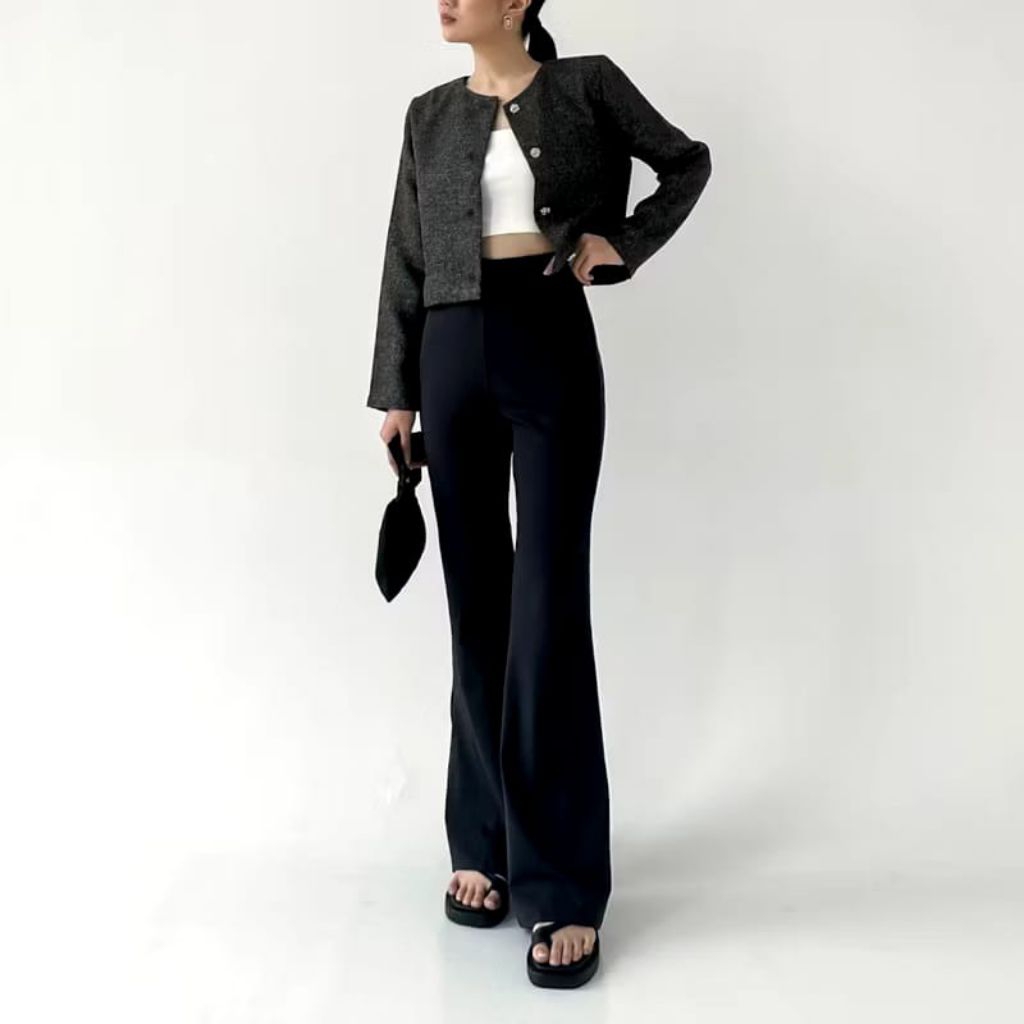 Celana Cutbray Wanita Fit And Flare Scuba Highwaist Bahan Stretch