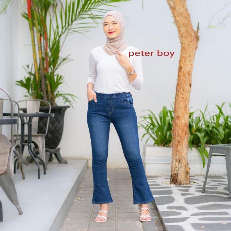 Celana Jeans Wanita Cutbray Model Pinggang Karet