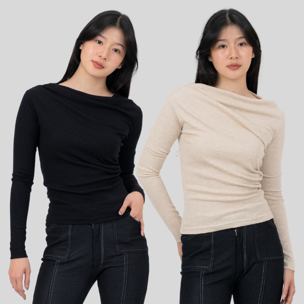 Clearance Sale | Sarah Top - Atasan Wanita Rib Knit Lengan Panjang Baju Basic Korean Top Long Sleeve