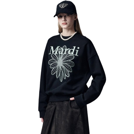 Crewneck Sweater Mardi Marcedi Logo Flowermardi Needlework Bordir Sweatshirt Korean Style Multicolor