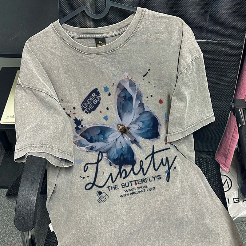 Dsstory | Korean Style Kupu-Kupu Retro Print Anti-Uv50+ T-Shirt |Atasan Wanita| Kaos Wanita | Korea Top Wanita | Atasan