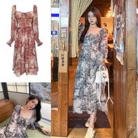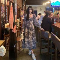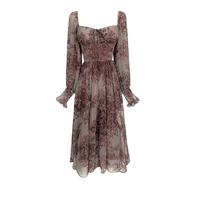 Murah D0783 DELIA KOREAN STYLE FLORAL VINTAGE MIDI DRESS PANTAI GARDEN HIJAB BUMIL PESTA ELEGANT - Black Elegan