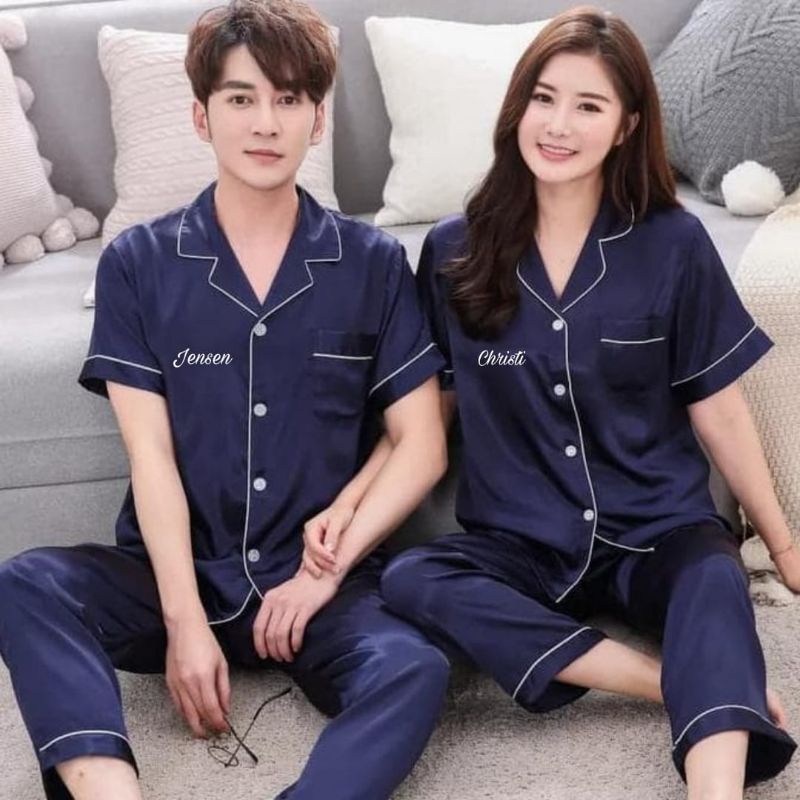 Piyama pajamas baju tidur couple pria wanita custom bordir nama hadiah kado gift nikahan wedding pernikahan prewedding /