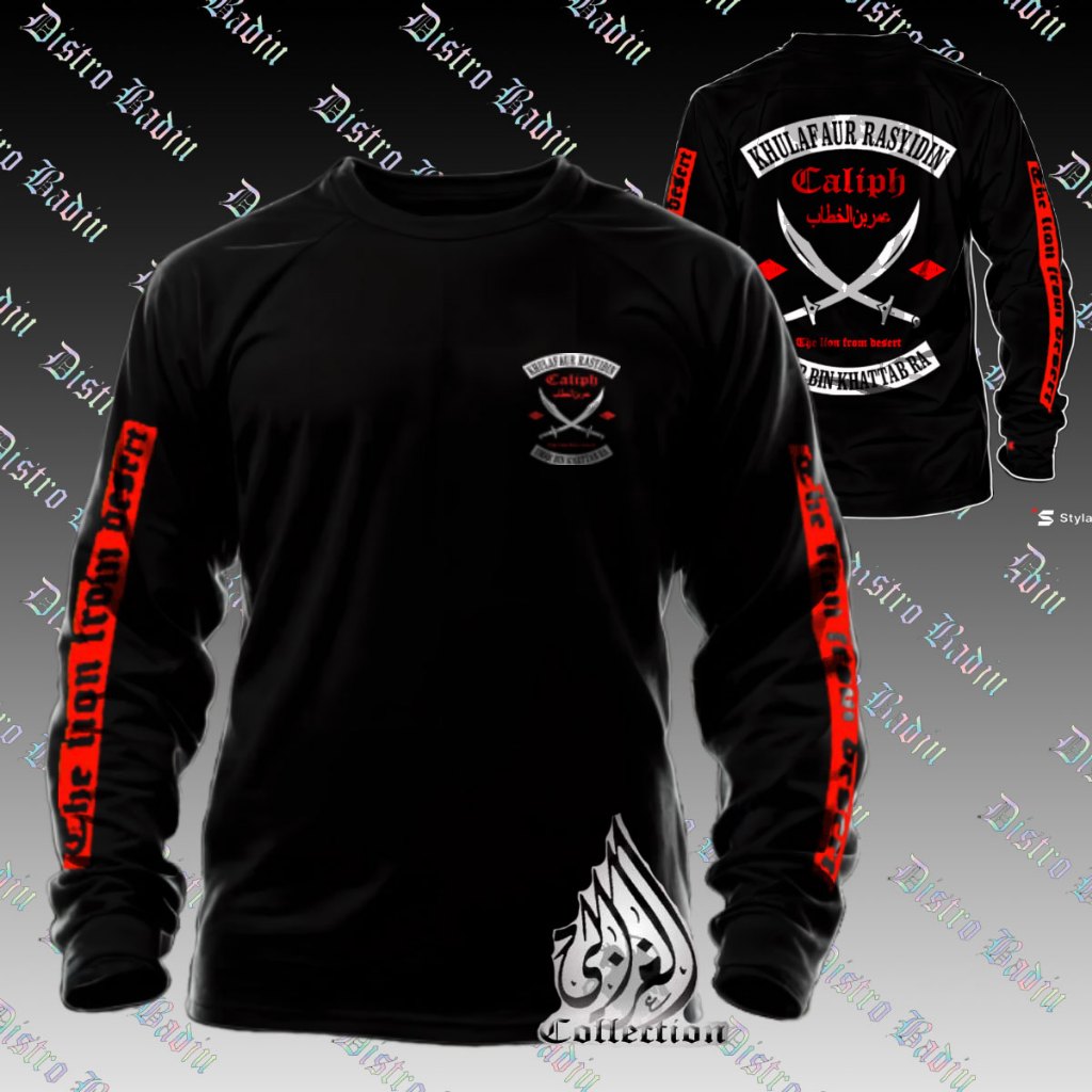 BISA Kaos Lengan Panjang Khulafaur Rasyidin UMAR BIN KHATTAB | Baju Distro Islami Pria Full Sablon Premium