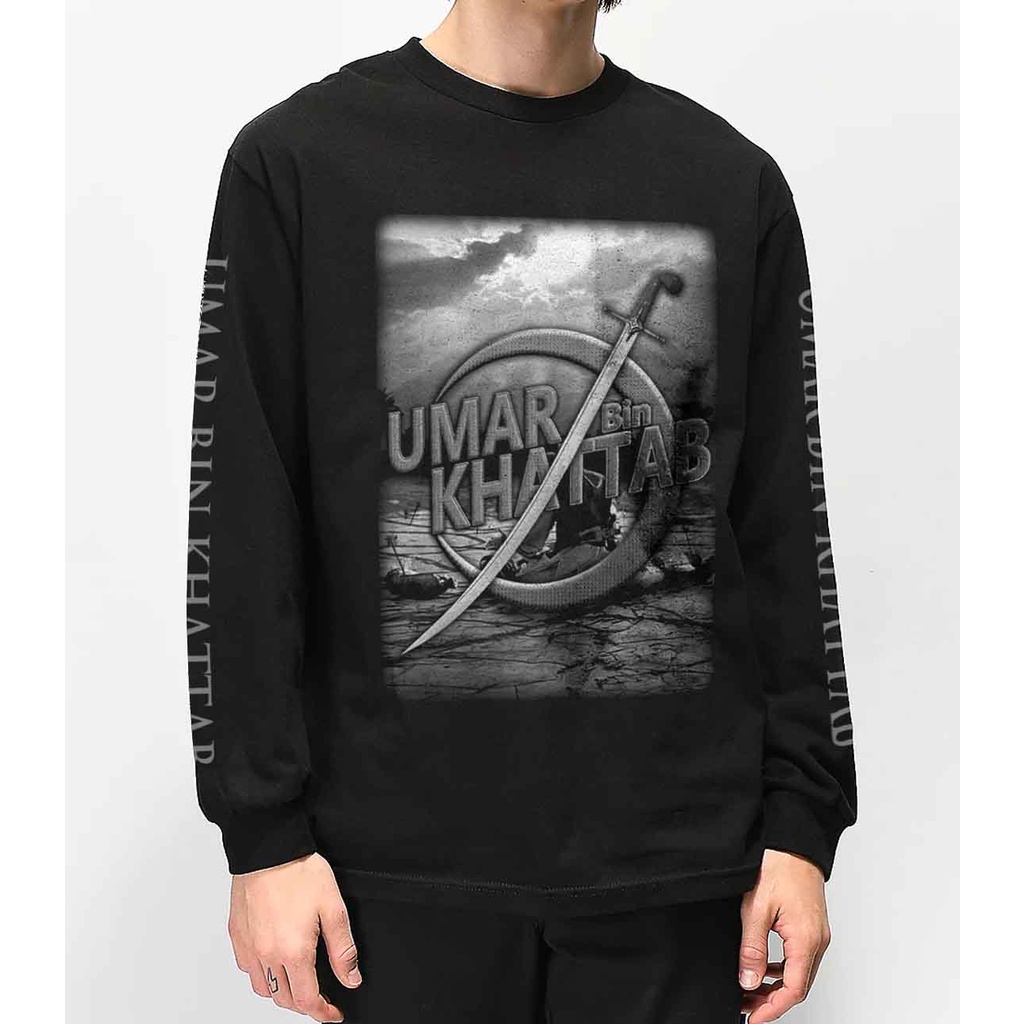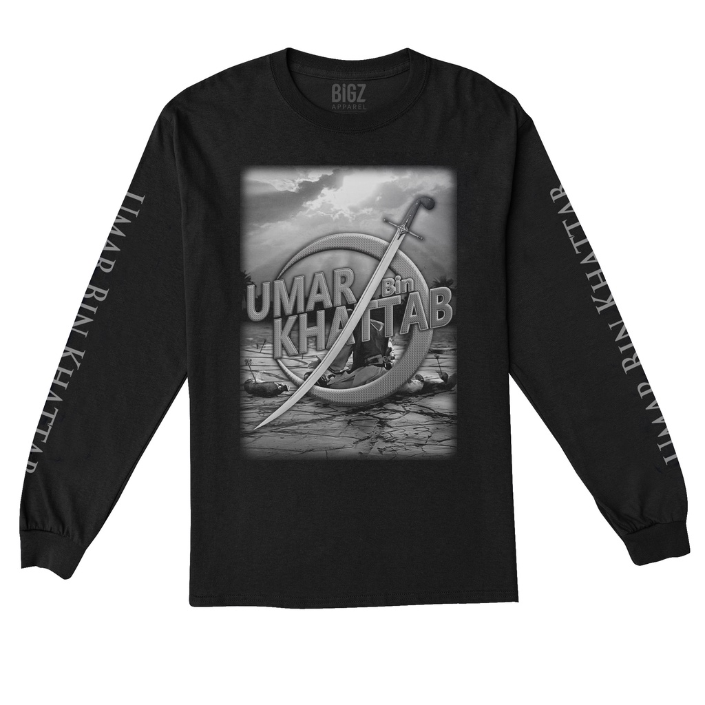 Kaos Dakwah islami BIGZ.Longsleeve kaos Pria umar bin khattab Pedang l PANJANG l HITAM