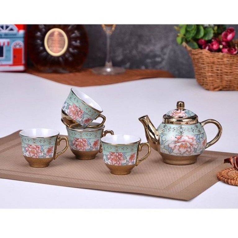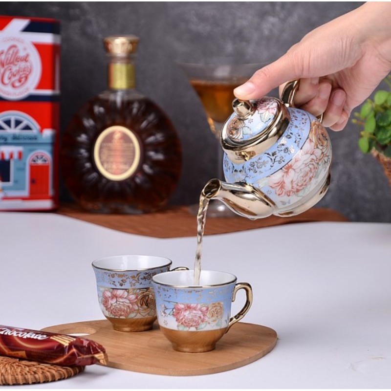 hampers kado set Cangkir teko teapot set 5 in 1keramik premium europa classic style / parcel lebaran