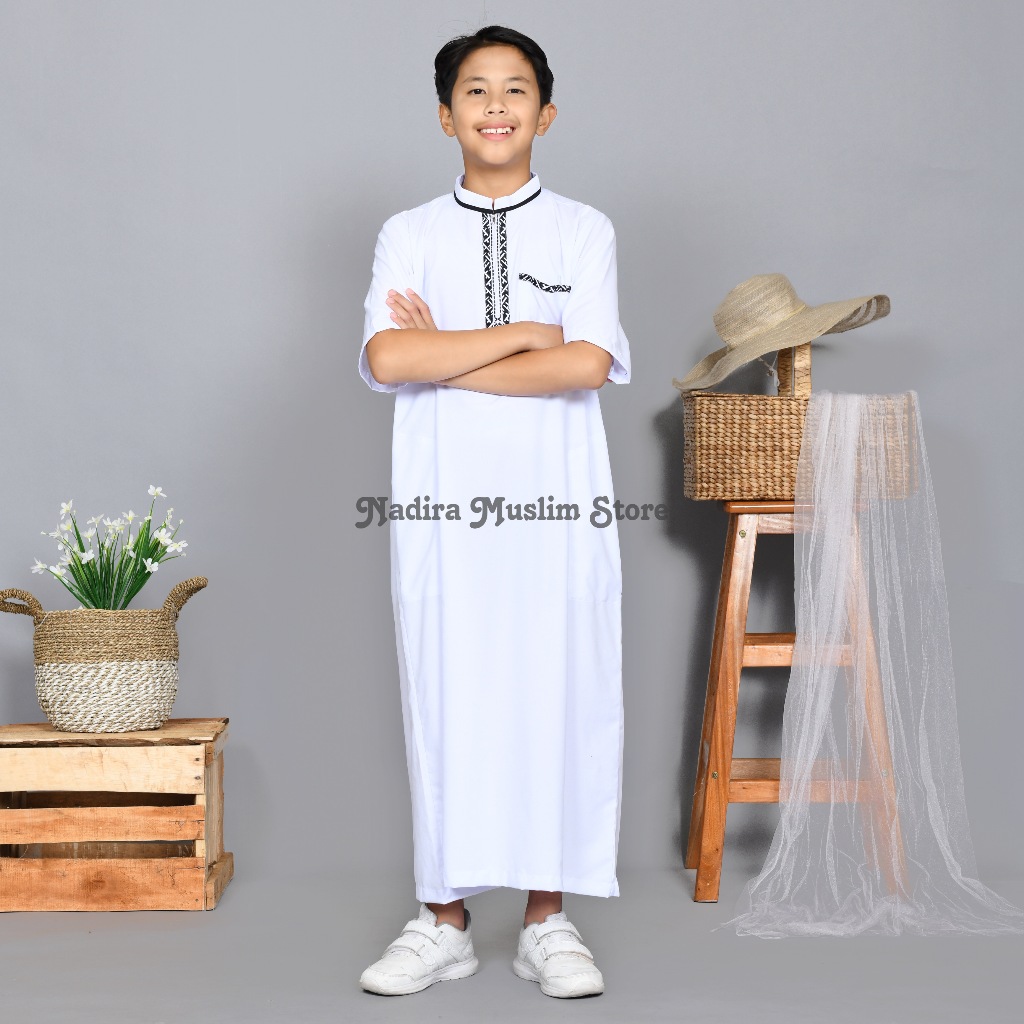 JUBAH ANAK LAKI - LAKI GAMIS LENGAN PENDEK ANAK LAKI - LAKI USIA 3 - 16 TAHUN BORDIR SIMPEL ELEGAN