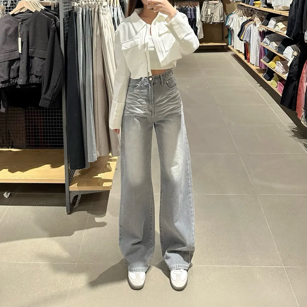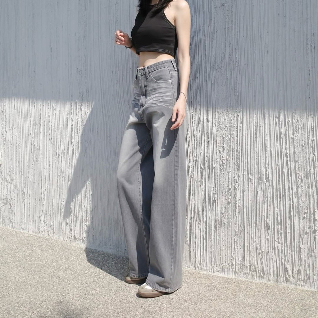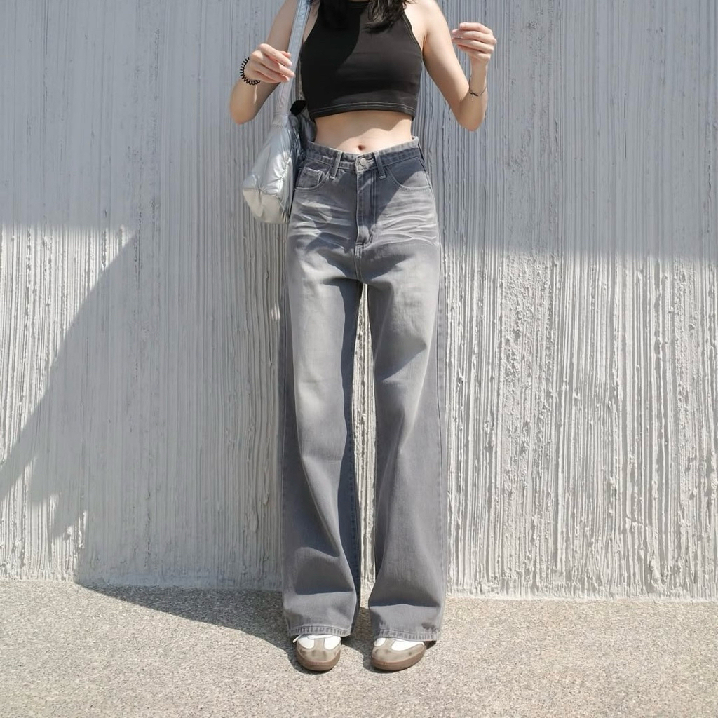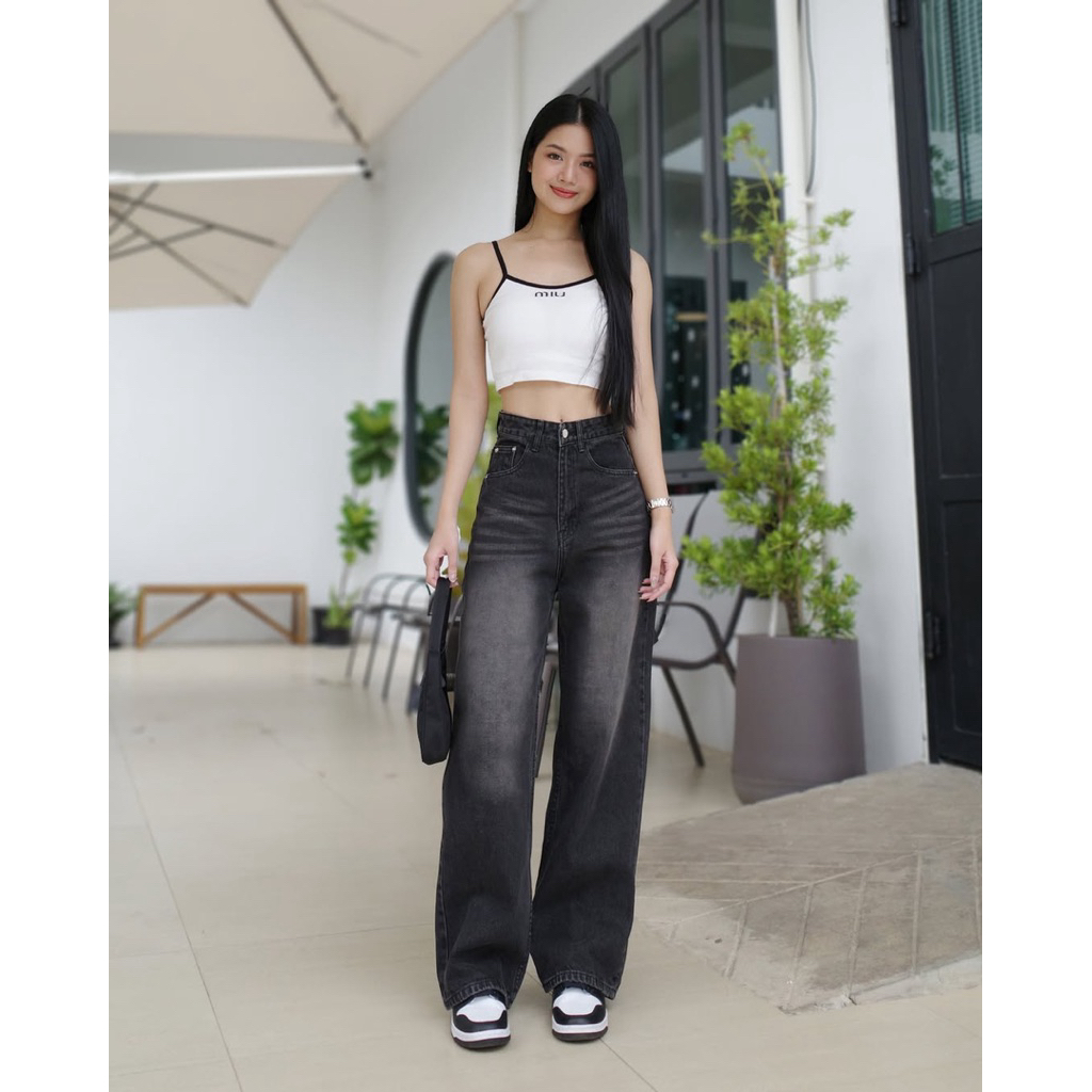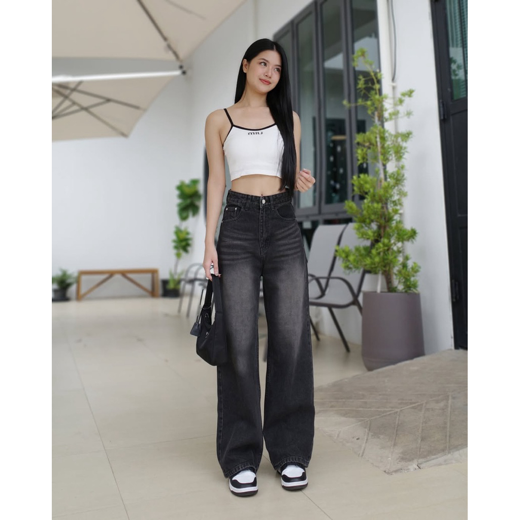 Celana Denim Wisker Unisex Celana Cowok Cewek Panjang Lebar Baggy Black Wisker Oversize Jumbo