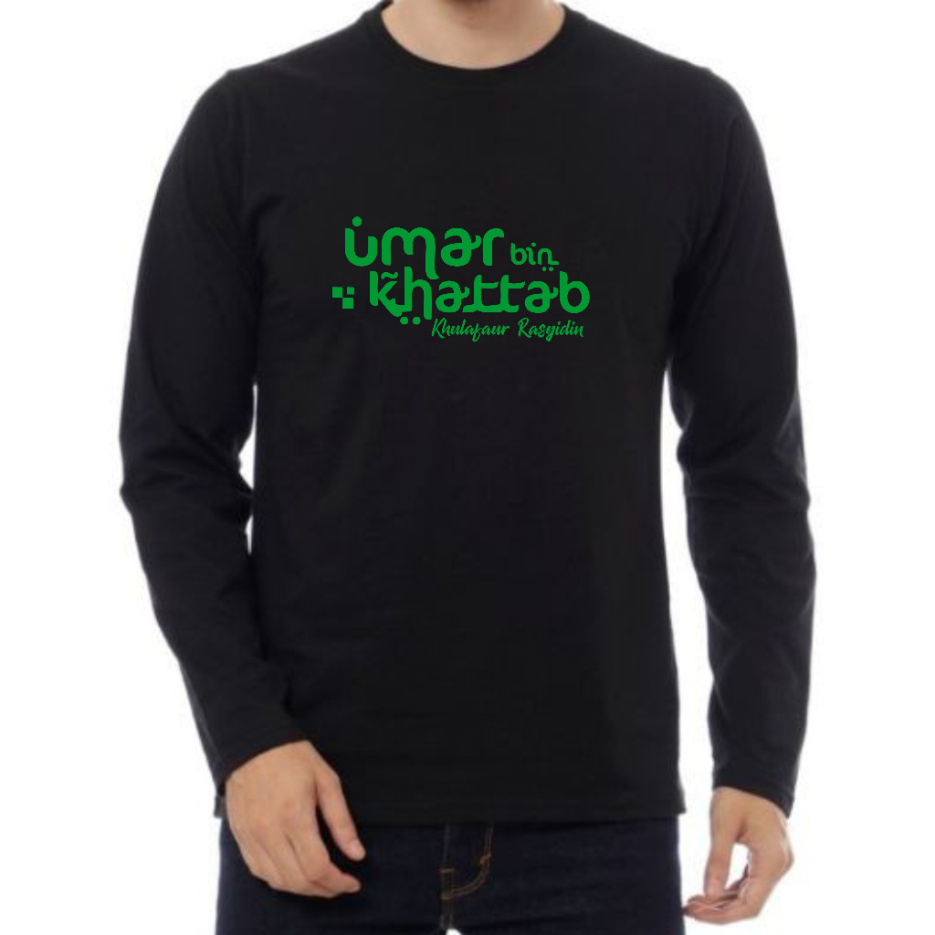ALIP KAOS MUSLIM UMAR BIN KHATTAB KHULAFAUR RASYIDIN BAJU SANTRI PASANTREN LENGAN PANJANG HITAM