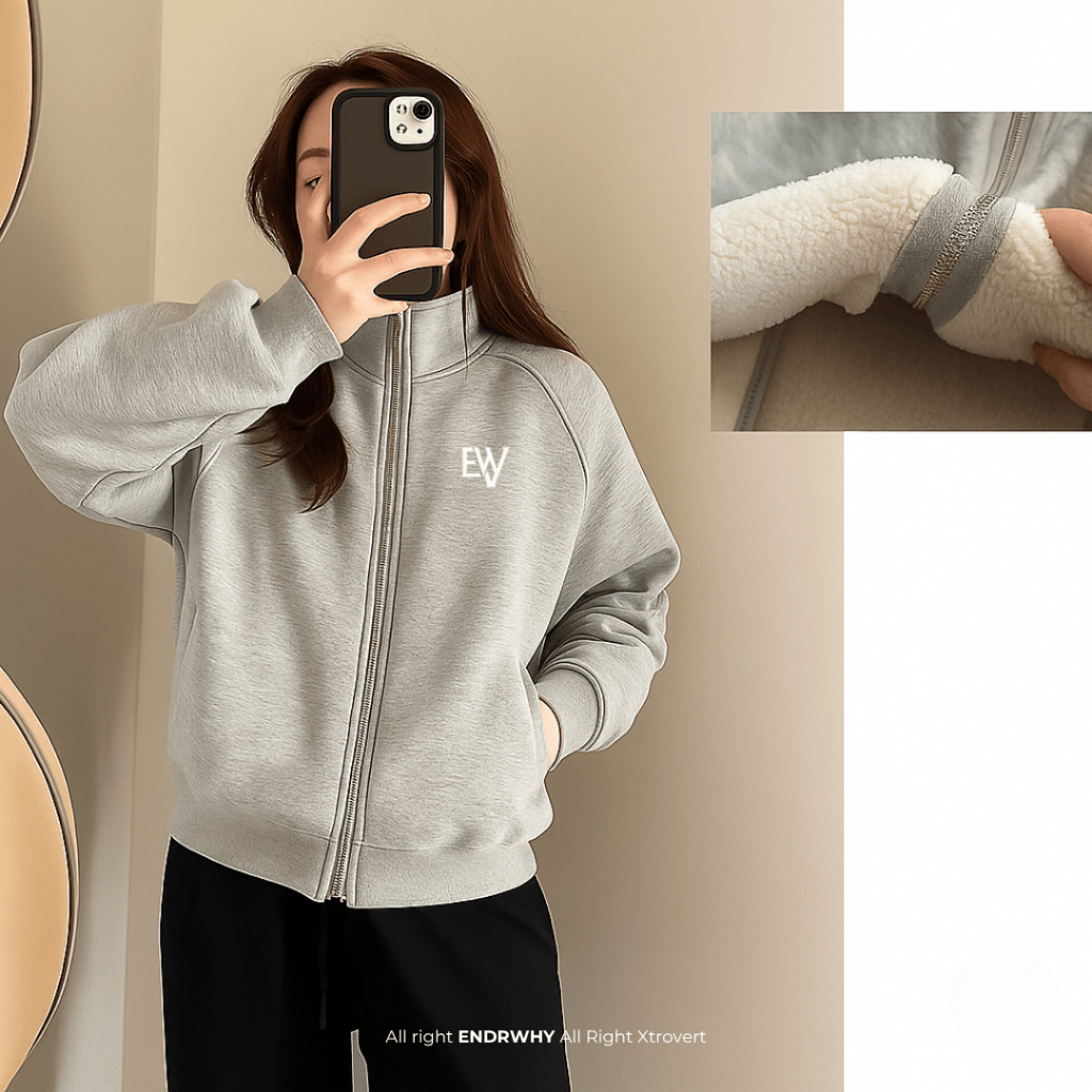 Endrwhy Crewneck Sweater Tebal Dan Hangat, Jaket Sweater Wanita Korean Style, Crewneck Sweater Polos Belapis Bulu Sherpa