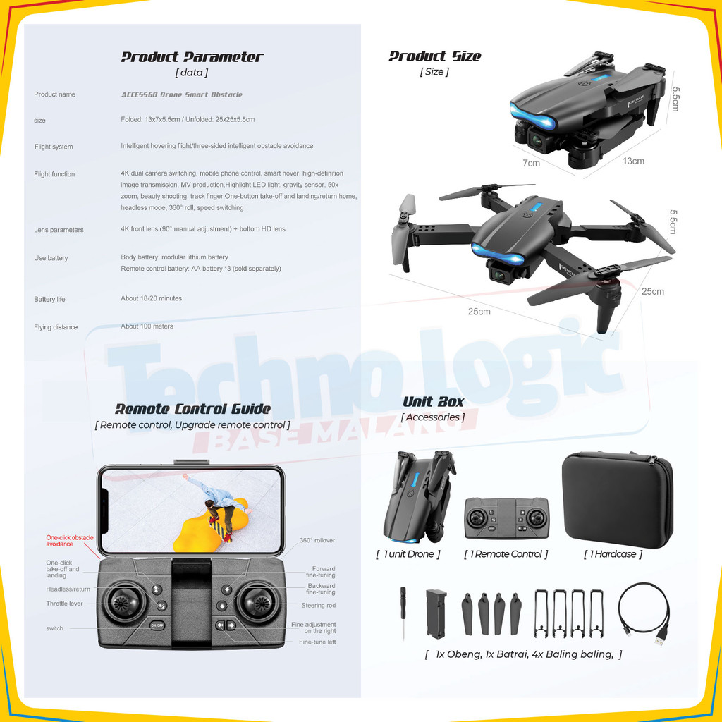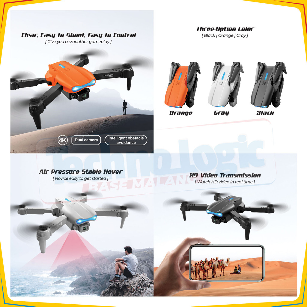 Drone Proshoot Lipat Foldable Drone E99pro 4k Dual Cam Dengan Sensor Nabrak