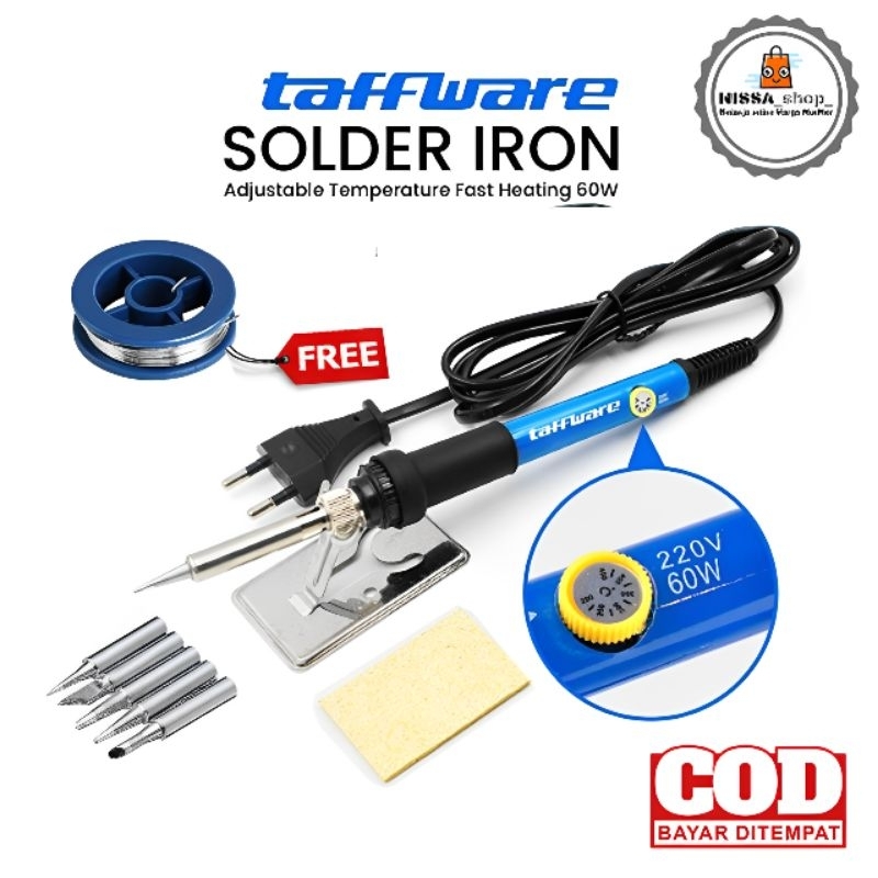 Solder Iron Adjustable Taffware Fast Heating 60W Dengan 5 Tips Dan Timah