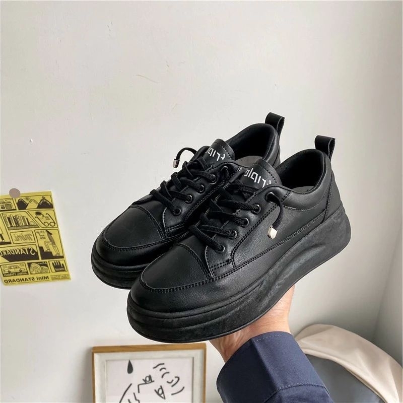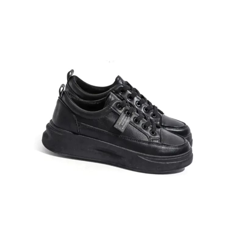 Sepatu Sneakers Wanita Warna Hitam Fashion Korean Style Terbaru 2023 Hits / Sepatu Sekolah Laki - Laki Perempuan Full Black Hitam Putih Polos S16