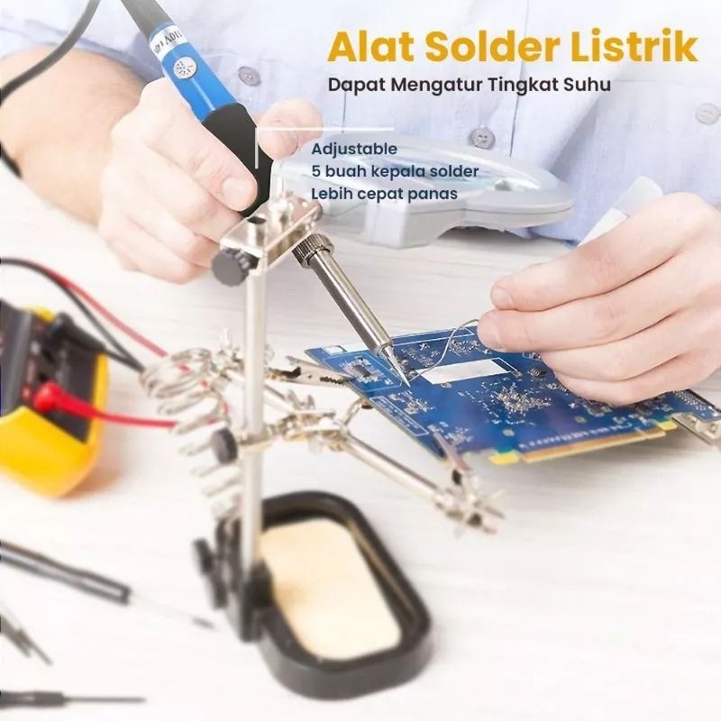 Solder Adjustable Temperature Taffware Fast Heating 60W Dengan Tips Dan Timah