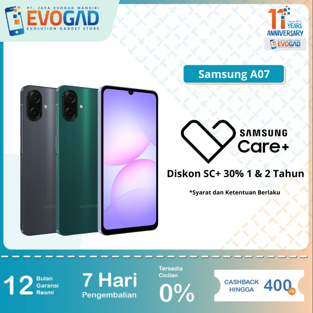 Samsung Galaxy A07 4G 4/64GB, 4/128GB Camera 50MP 6.7 Inch Helio G99 5000mAh Garansi Resmi SEIN 1 Tahun