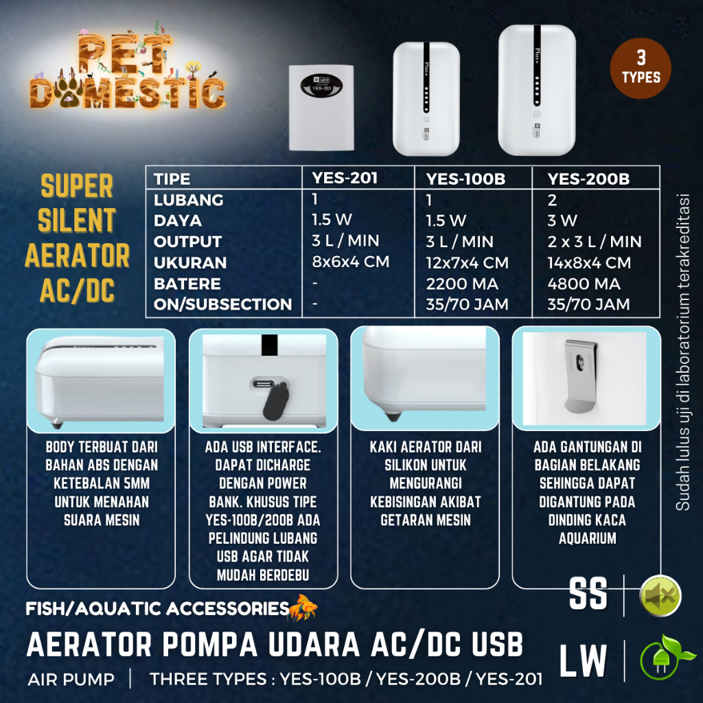 AQUARIUM SILENT AERATOR AIR PUMP AC DC USB PORTABLE MANCING POMPA GELEMBUNG UDARA BATERAI CAS AIRATOR OKSIGEN IKAN