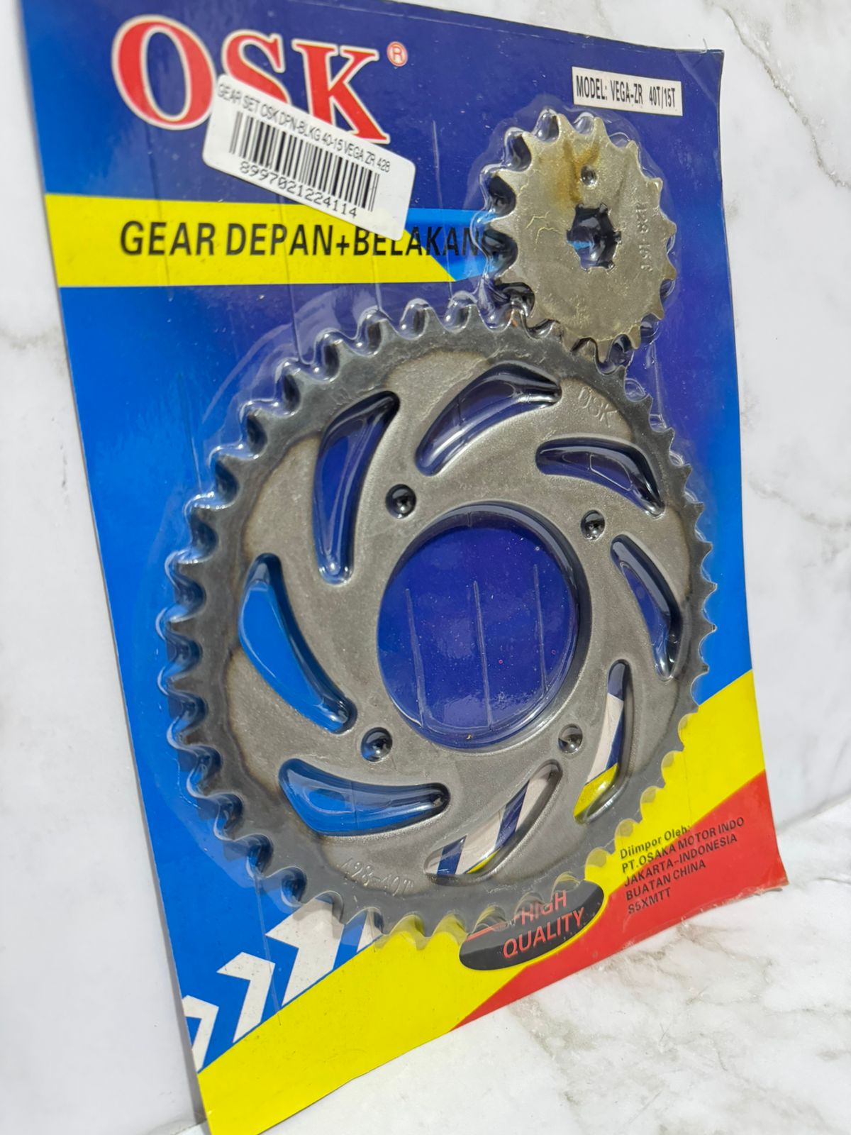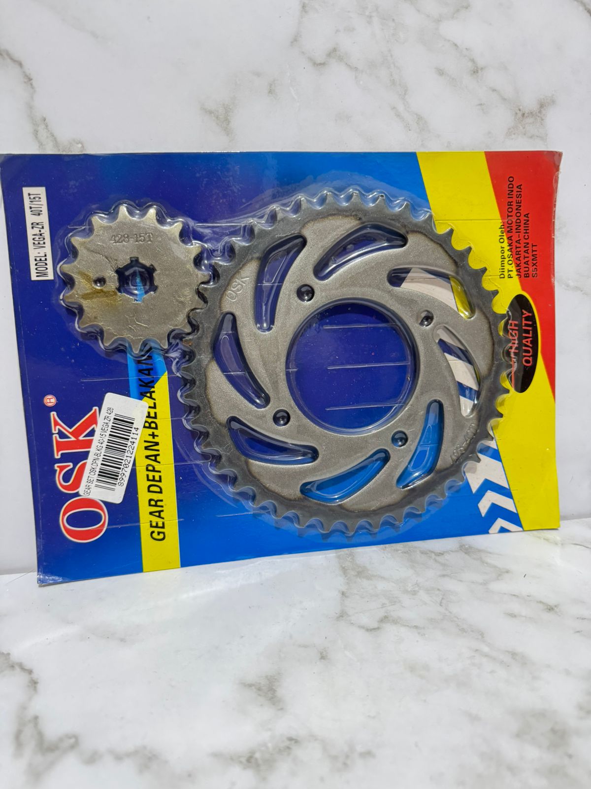 Gear Set OSK Depan Belakang Vega Zr 40T/15T Gear Gigi Vega Zr Jupiter Z New 428 40T/15T