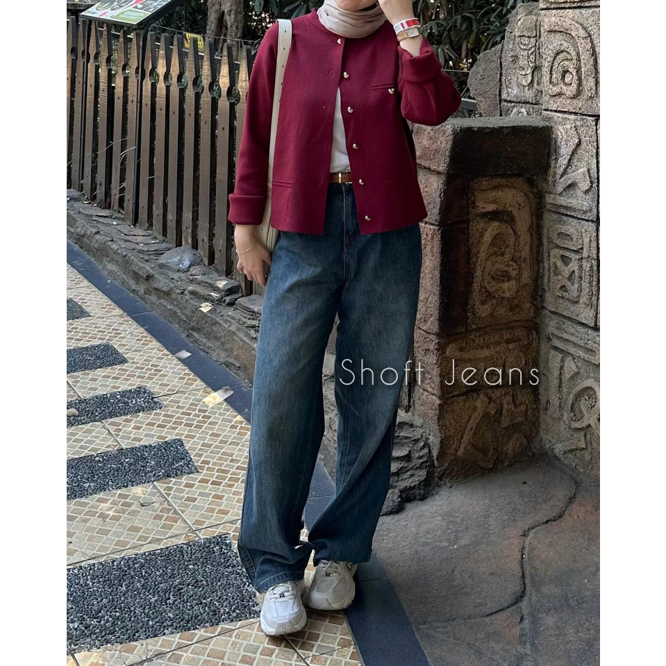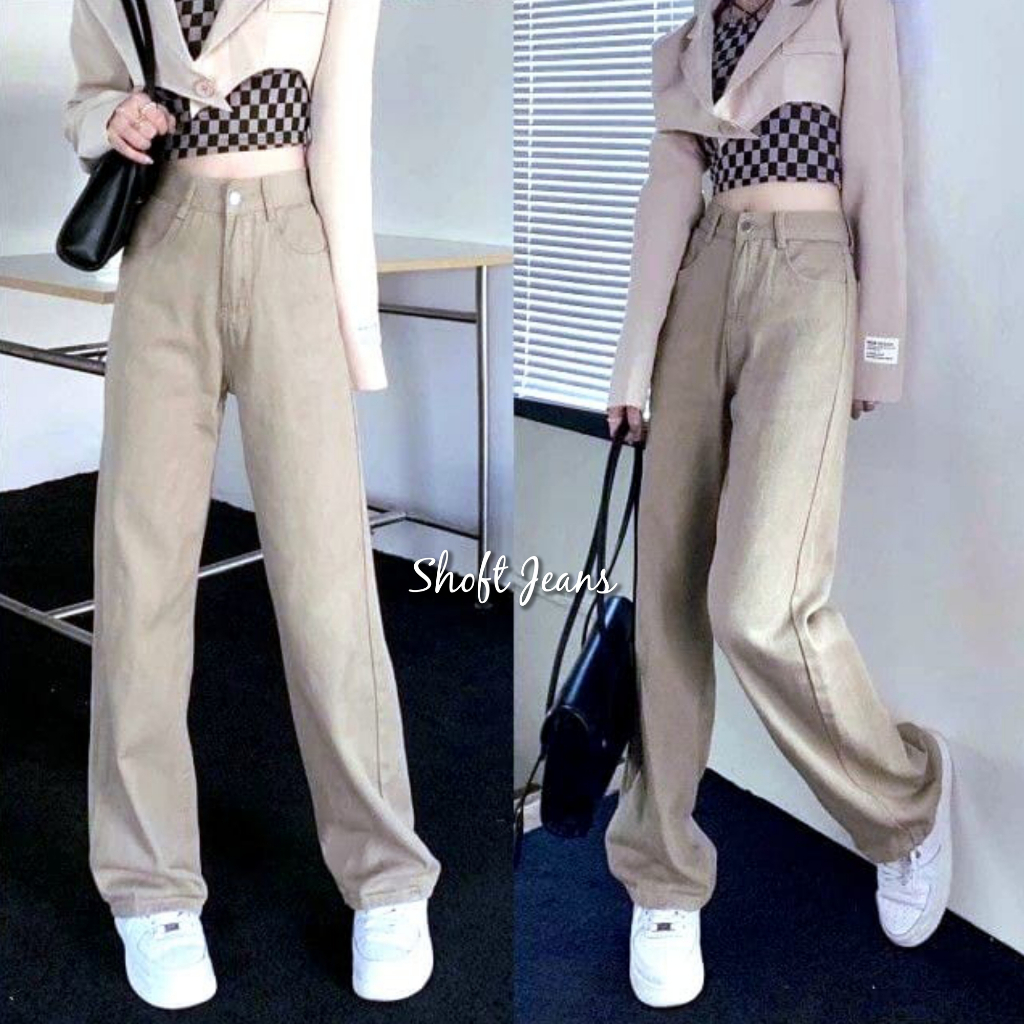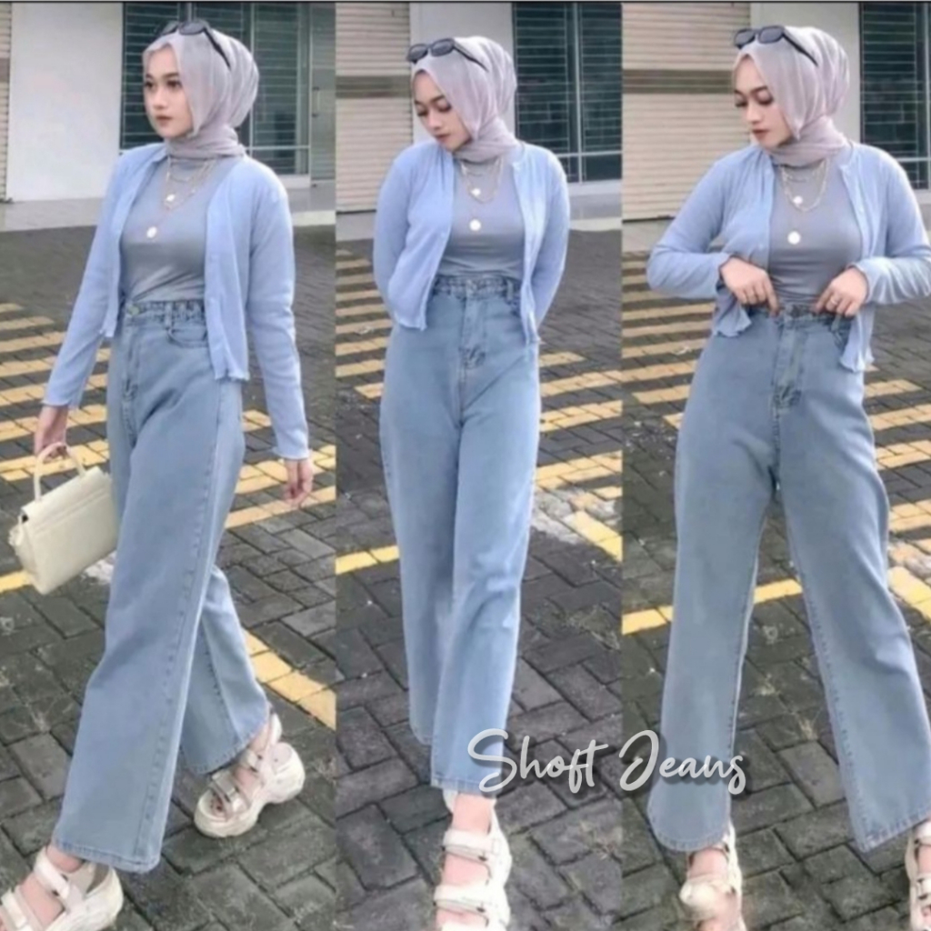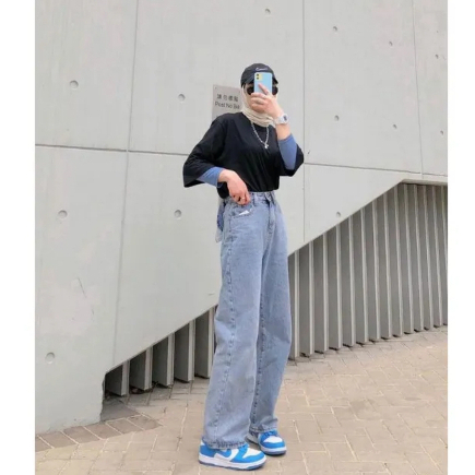 Highwaist Kulot Jeans Retro Terbaru 2024 Loose Korea Style Acid Grey Panjang 102Cm - Celana Baggy Jeans Standar Wanita