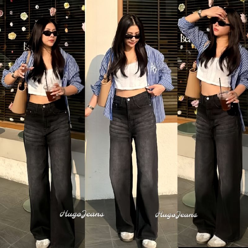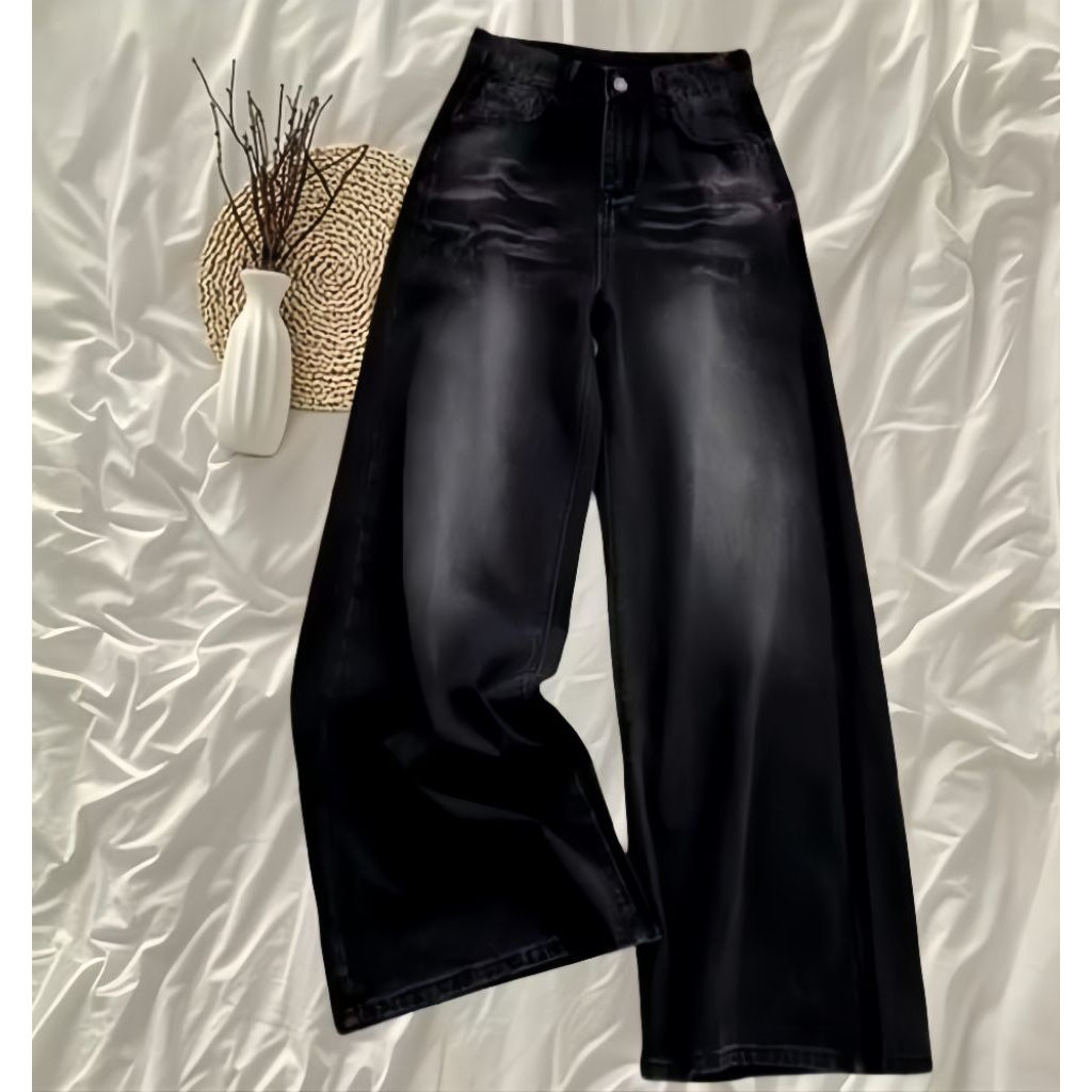 Celana Jeans Whisker Gombrong Highwaist Baggy Pants Unisex