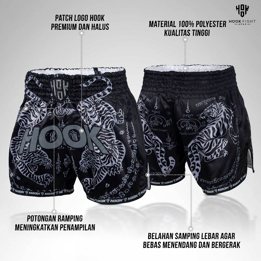 Celana Muay Thai Hook Muaythai Short Hook Celana Muay Thai Pants Kickboxing Hook Boxer Muaythai Boxing 1H