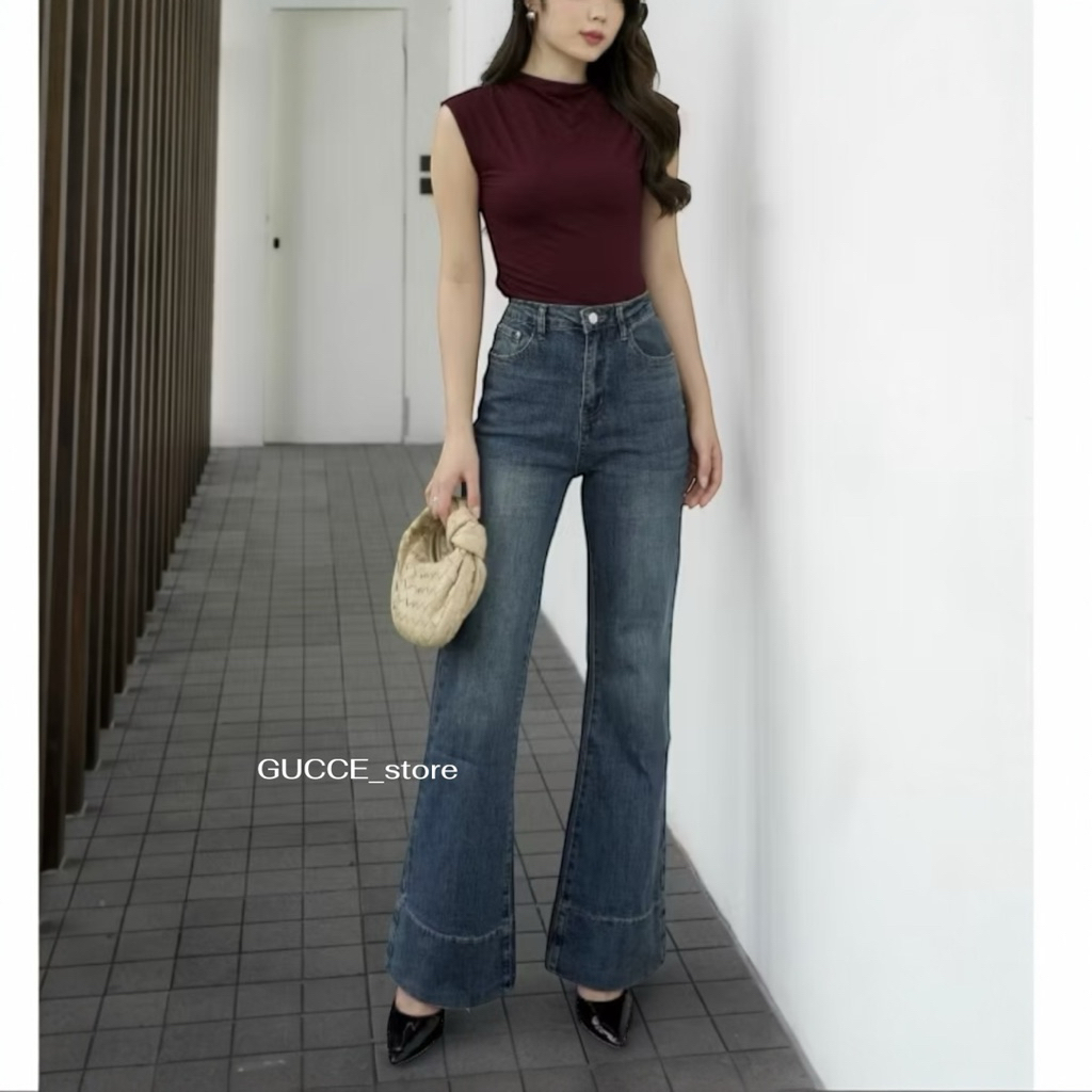 Celana Jennie Highwaist Cutbray Flare Panjang Wanita Retro