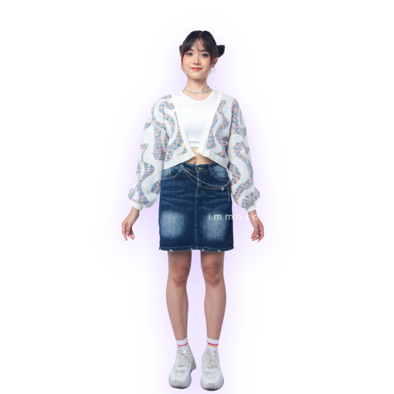 Immaso | Areum Candy Rainbow Cardigan Crop Top - Knitwear - Rajut Motif