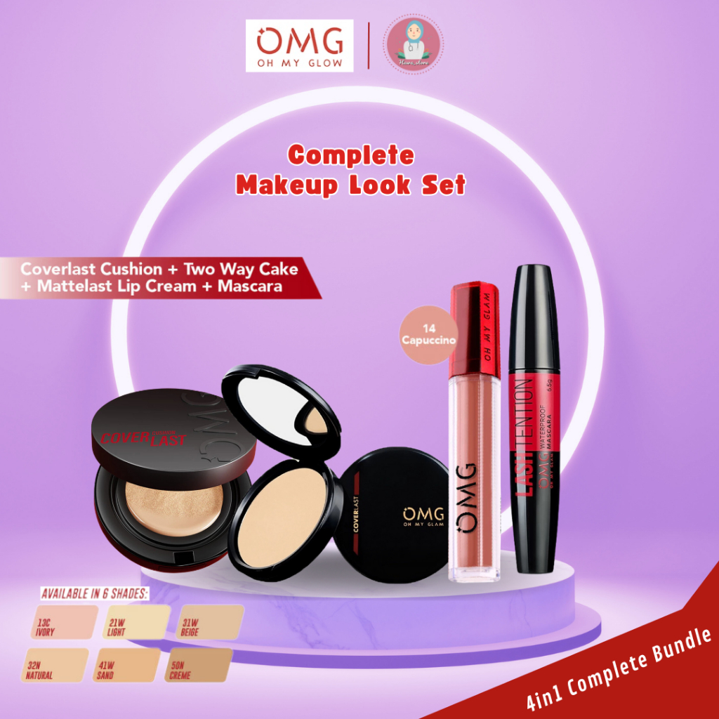 OMG Oh My Glam Complete Makeup Set 4in1 (Cushion + TWC + Lip Cream + Mascara)