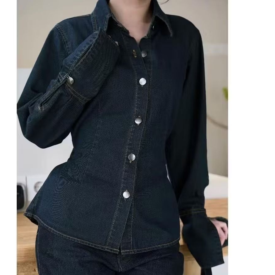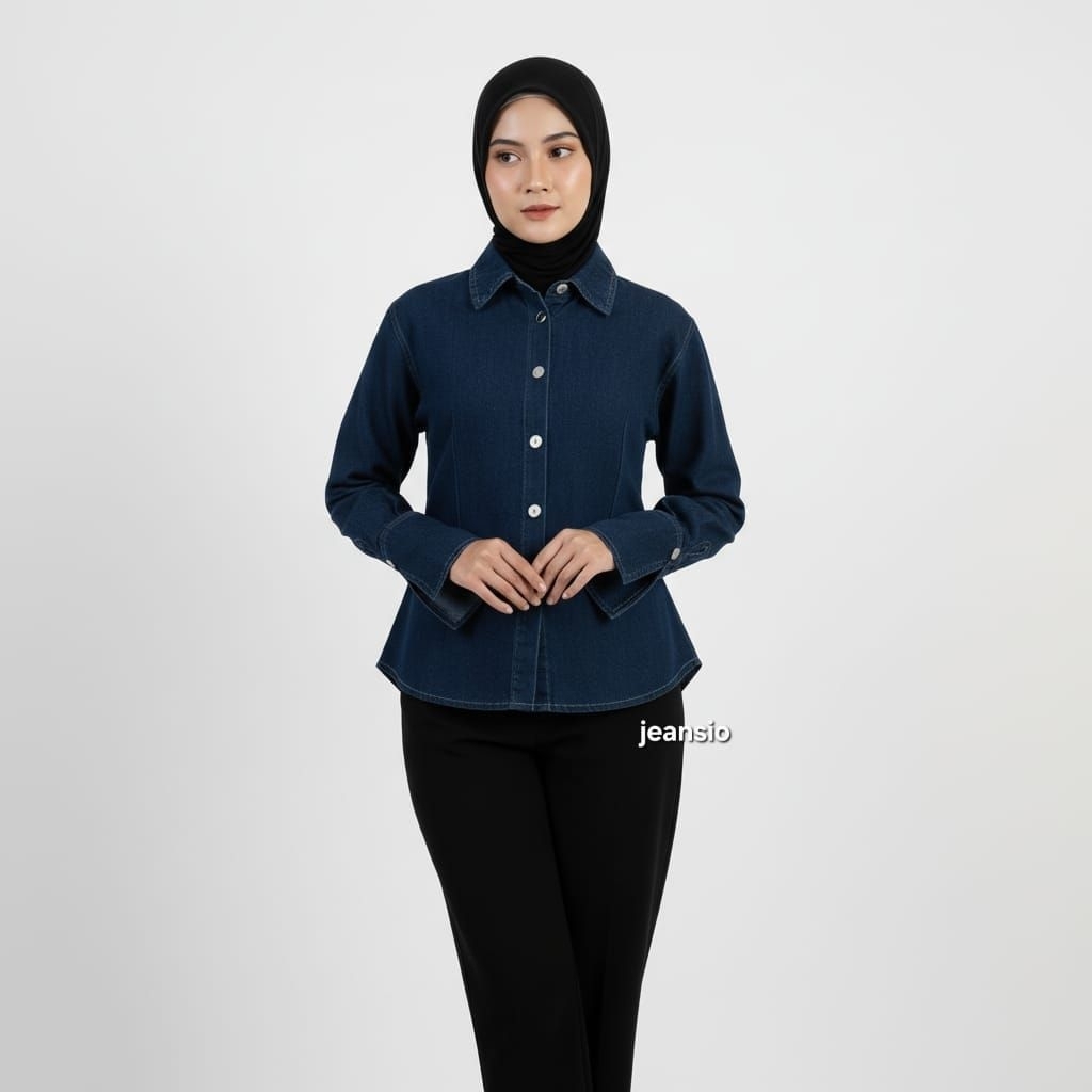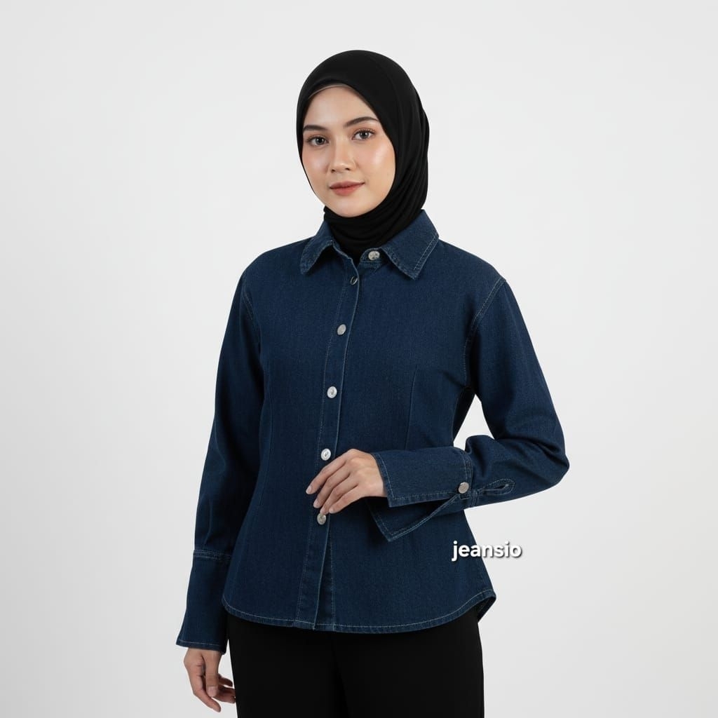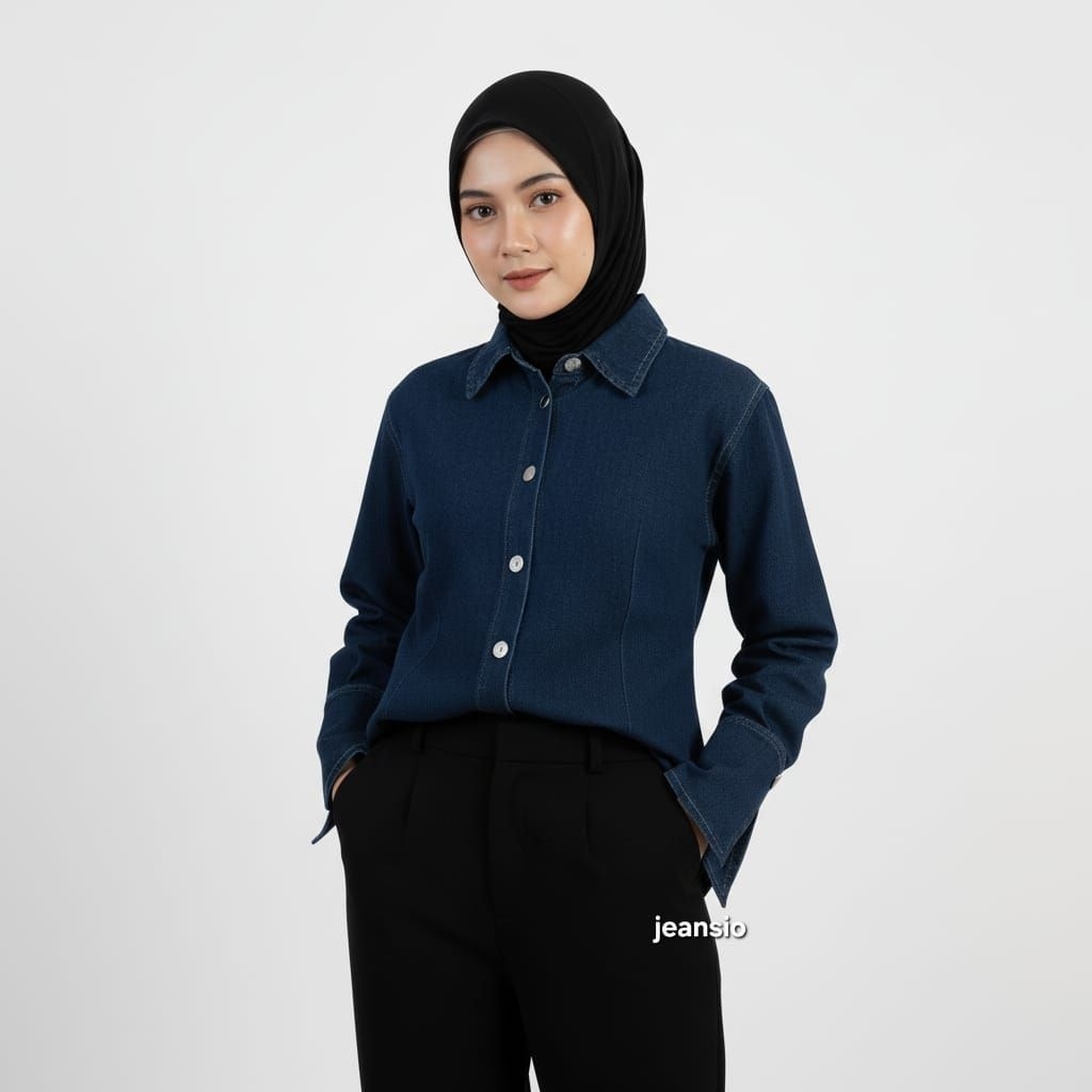 Jeansio Julia Blouse Top Slim Fitted Shirt | Blouse Denim Wanita Fit Body | Kemeja Premium Wanita Casual