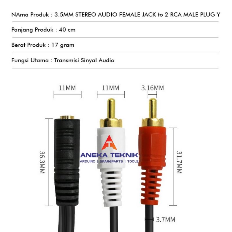 3.5mm STEREO AUDIO FEMALE JACK to 2 RCA MALE PLUG Y