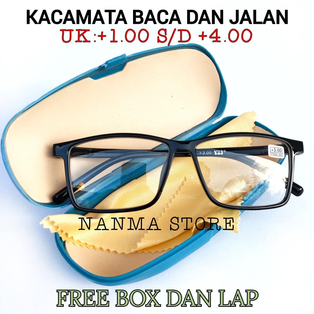 Kacamata dua fungsi buat baca dan jalan model kotak cocok untuk pria dan wanita/kacamata rabun dekat free box dan lap