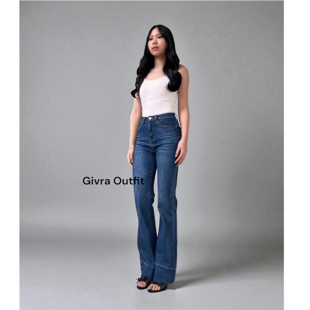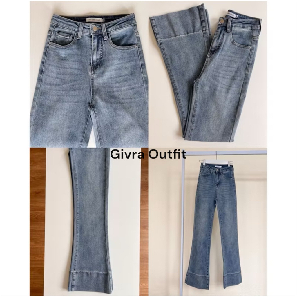 Jennie-HighWaist Cutbray Jeans Celana Flare Panjang Stretch Wanita Retro Vintage Lipat Bawah