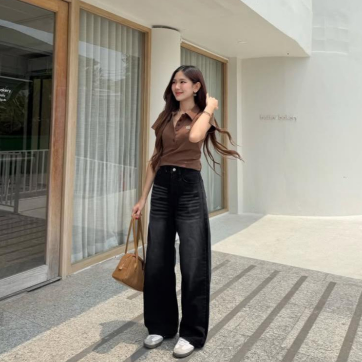 Highwaist Baggy Jeans Wanita Kulot Premium Denim