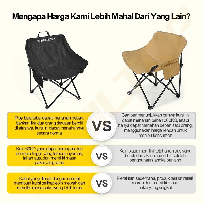 Kursi Lipat Outdoor Bulat Merek Trailtop Balutan Lebih Kuat Lebar 63Cm