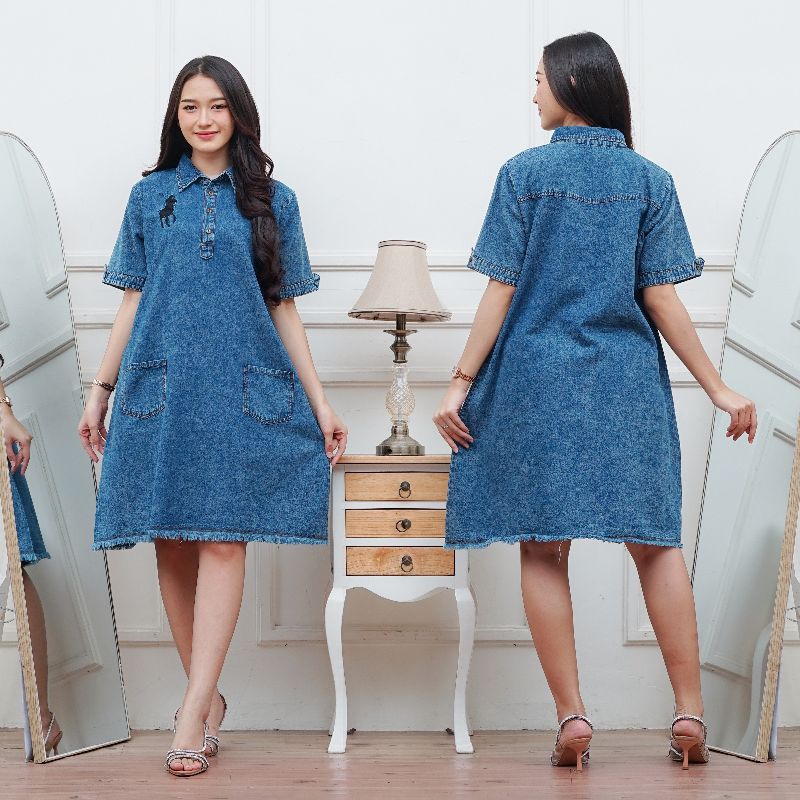 Tunik Jeans Wanita Dewasa Terbaru 2025 Kekinian Import Harga Murah Model Jumbo Bordir Ld 110,ld 120 dan ld 130cm
