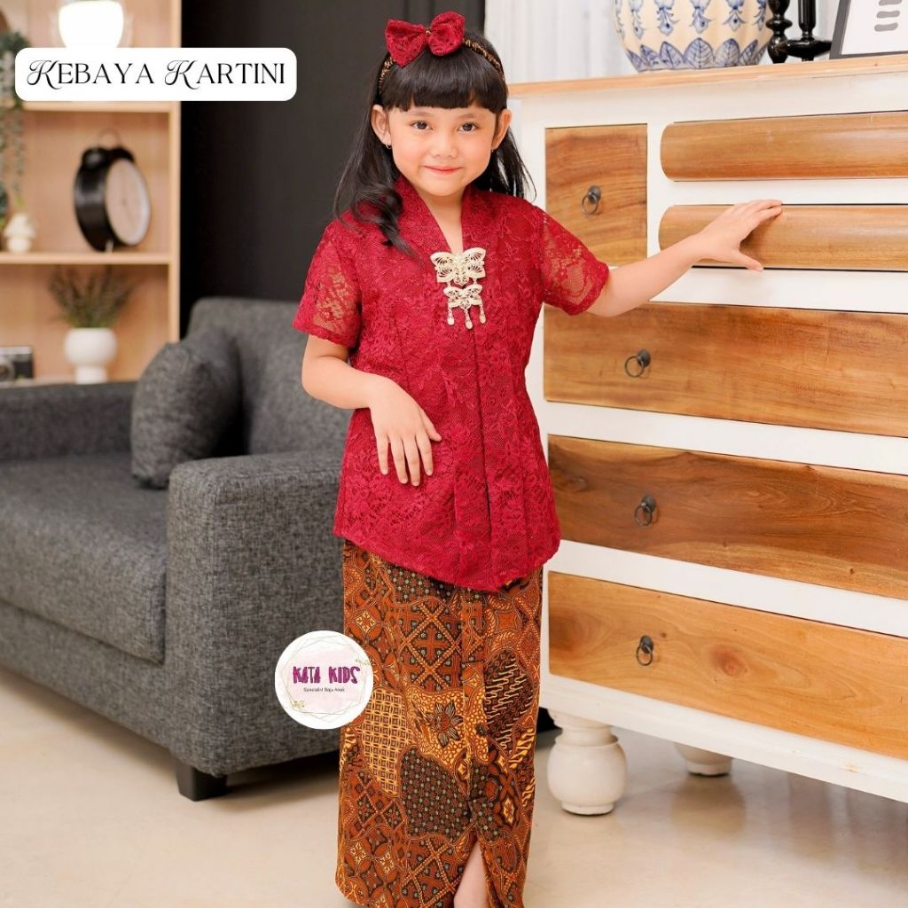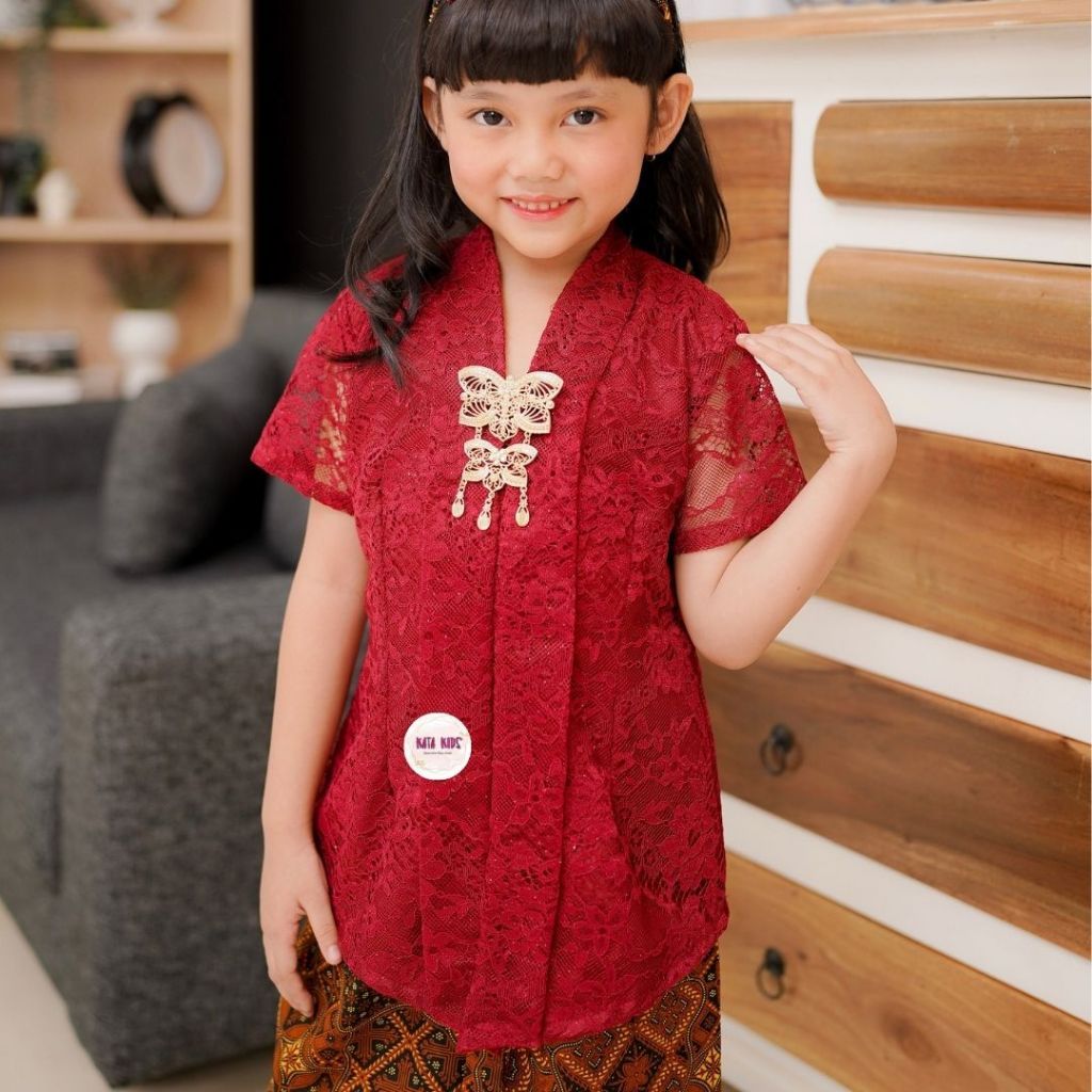 Setelan Kebaya Anak/ Kebaya Kartini Atasan Pendek Rok Panjang Coklat