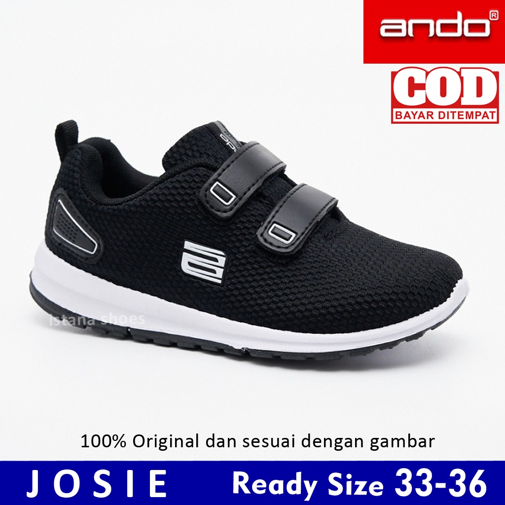 Sepatu Anak Sekolah Perempuan Laki Laki Cowok Cewek Ando Josie Hitam Putih PAUD TK SD Perekat Sneakers