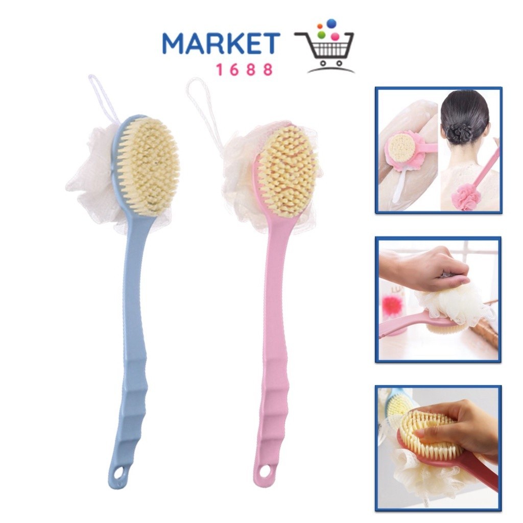 Sikat Mandi Dua Sisi Spon Bulu Lembut Gagang Panjang Sikat Gosok Punggung